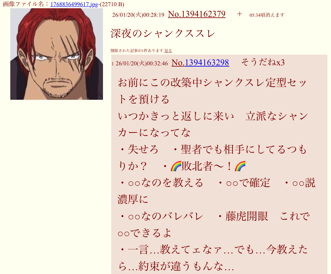 | deleted | deleted | 450 | 26/01/20(‰Î)05:38 | |