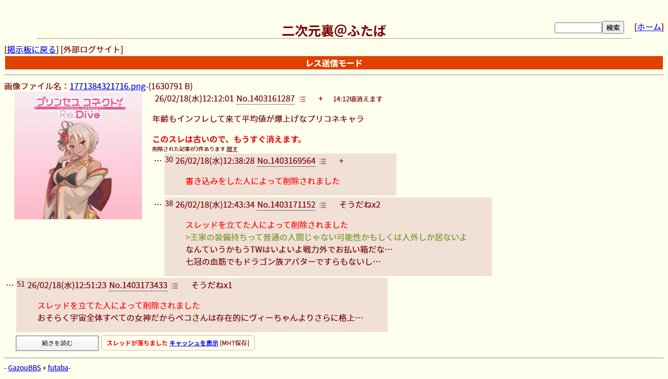 | deleted | deleted | 354 | 26/02/19(木)20:19 | |