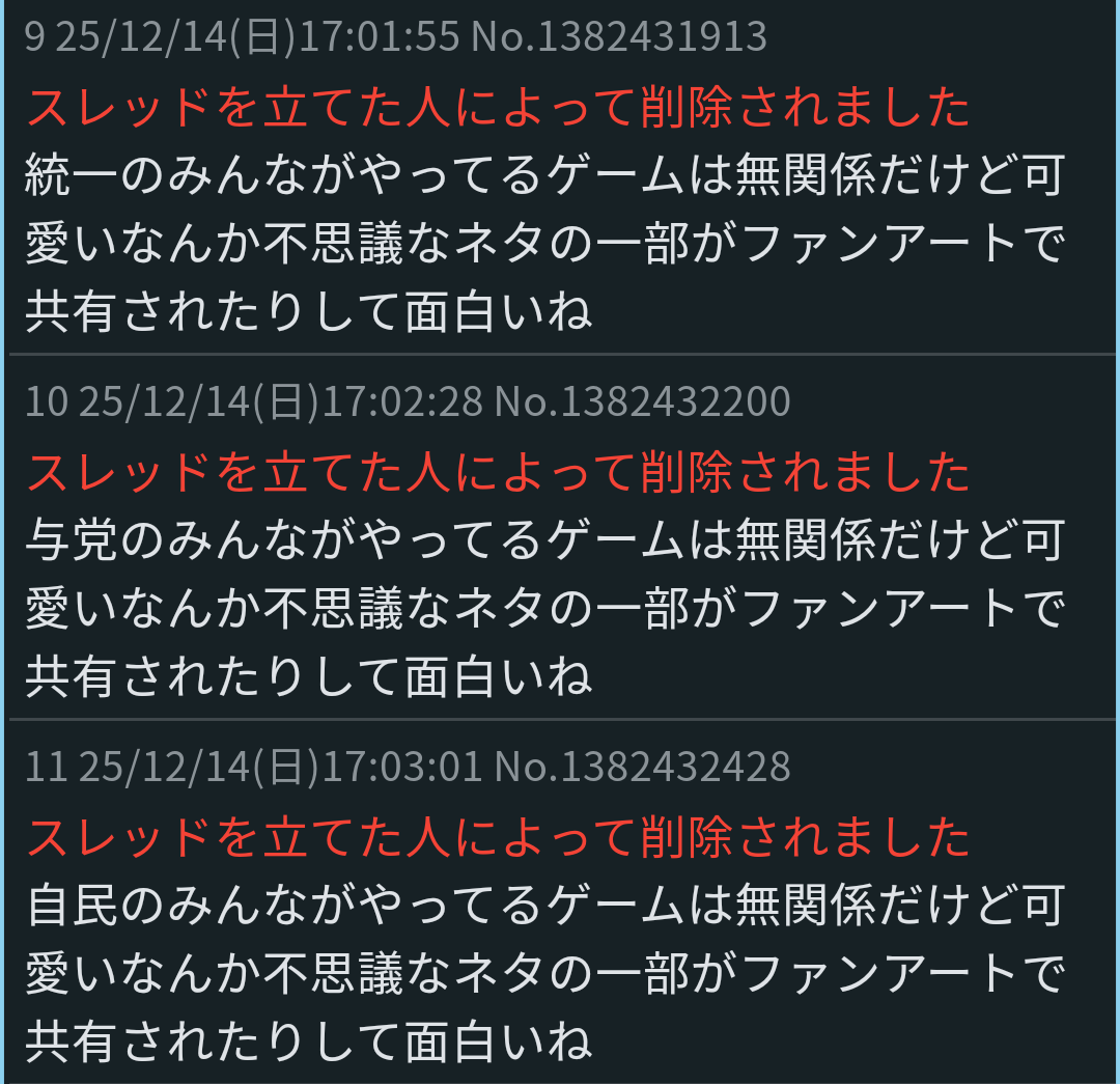 | deleted | deleted | 376 | 25/12/16(火)00:15 | |
