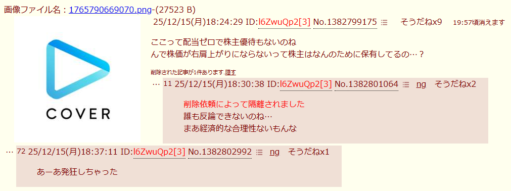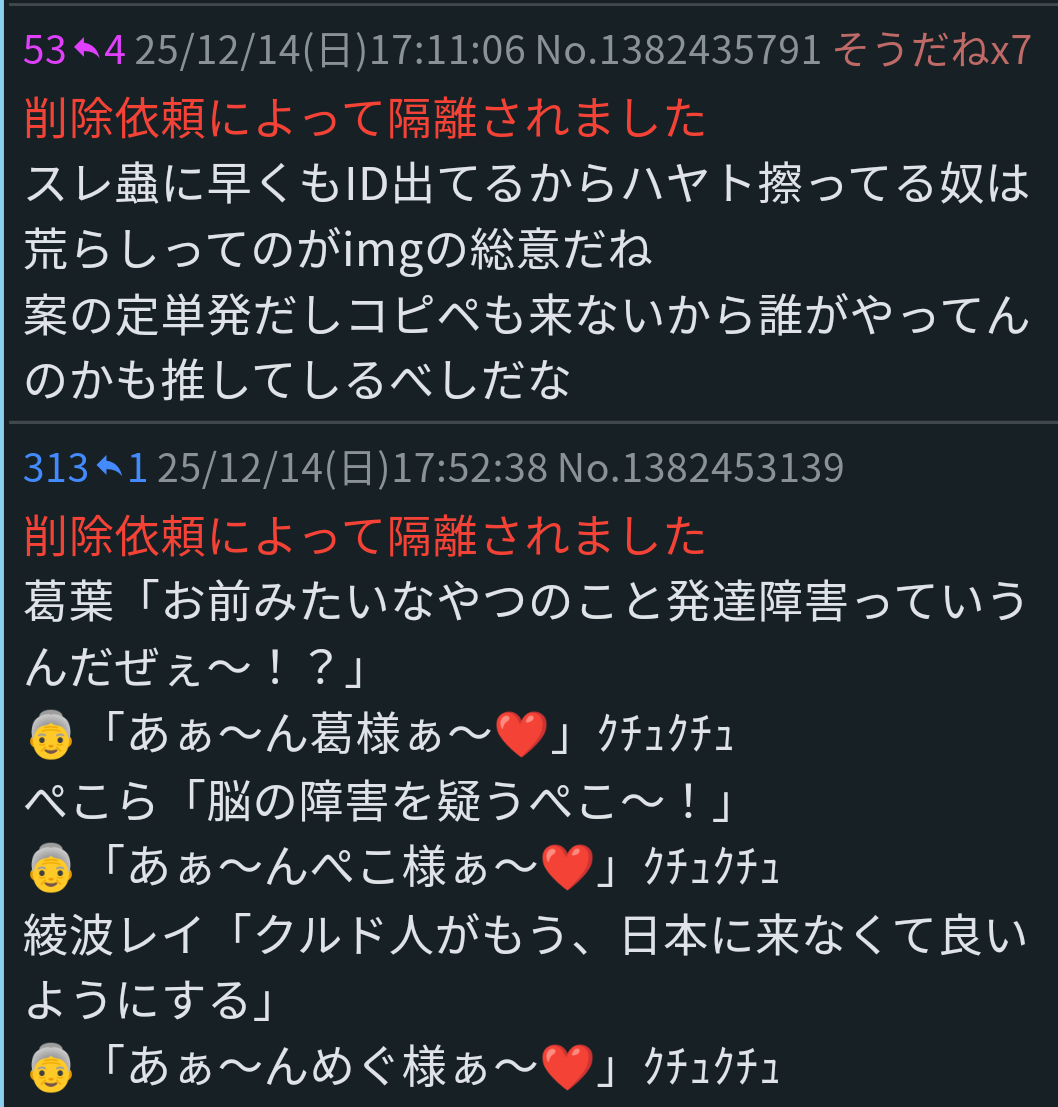 | deleted | deleted | 192 | 25/12/13(土)20:44 | |