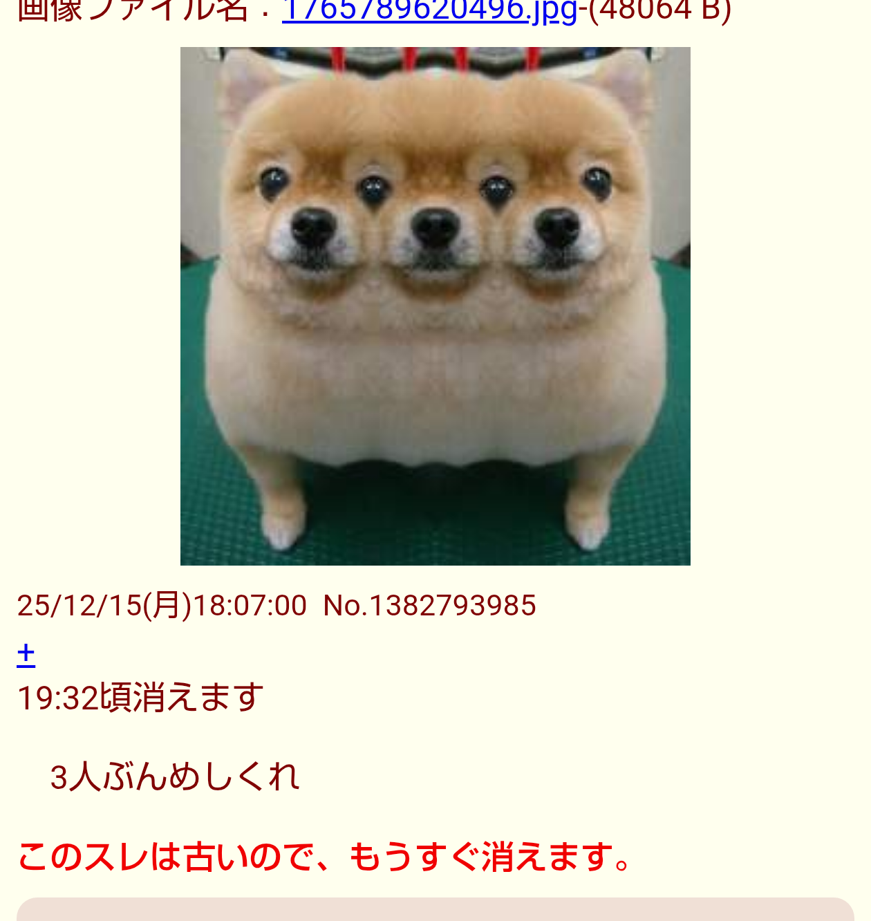 | D | fu6035314.jpeg | 64ae77d4aee03cb47e898a255cc1e7de | 302 | 25/12/16(火)00:15 |