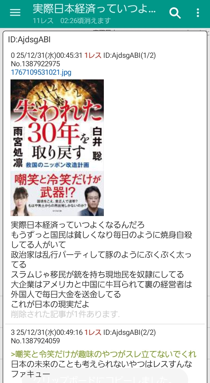 | deleted | deleted | 2152 | 25/12/30(火)22:21 | |