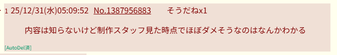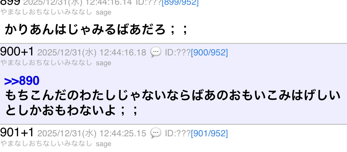| deleted | deleted | 538 | 26/01/01(木)12:14 | |