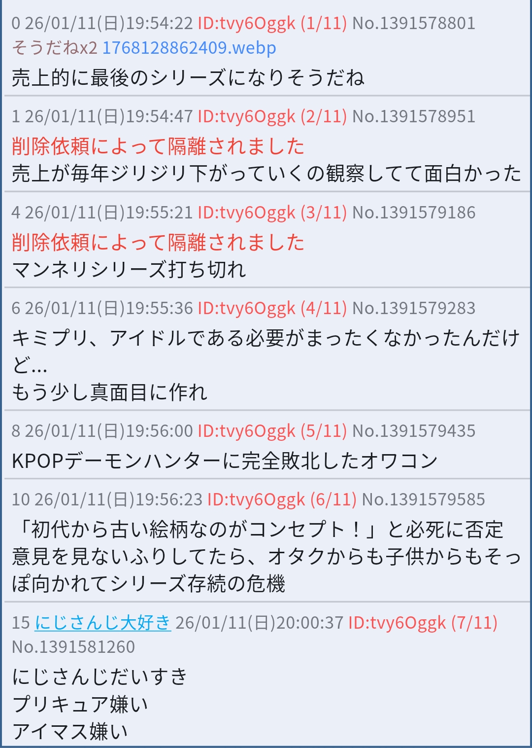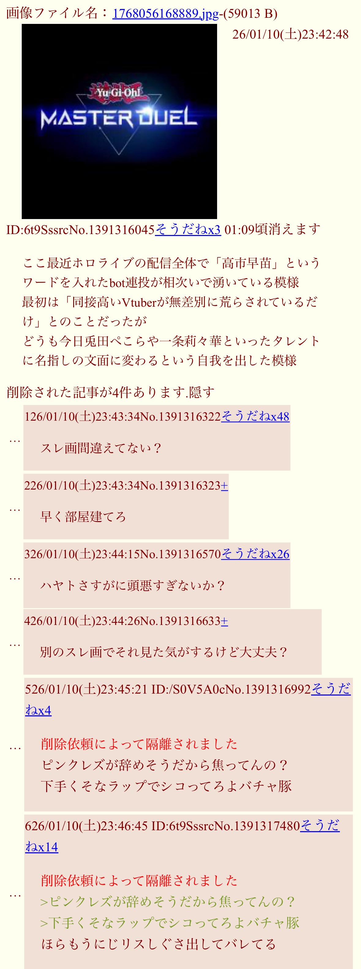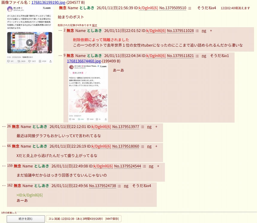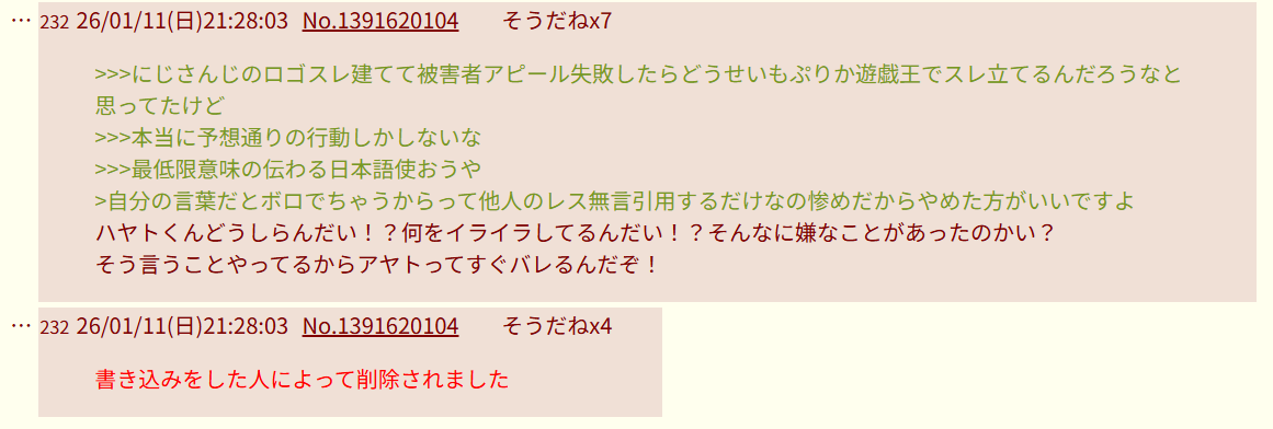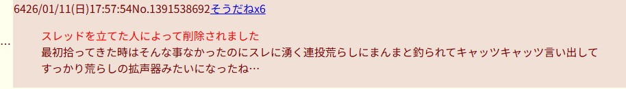 | deleted | deleted | 20 | 26/01/10(土)01:32 | |