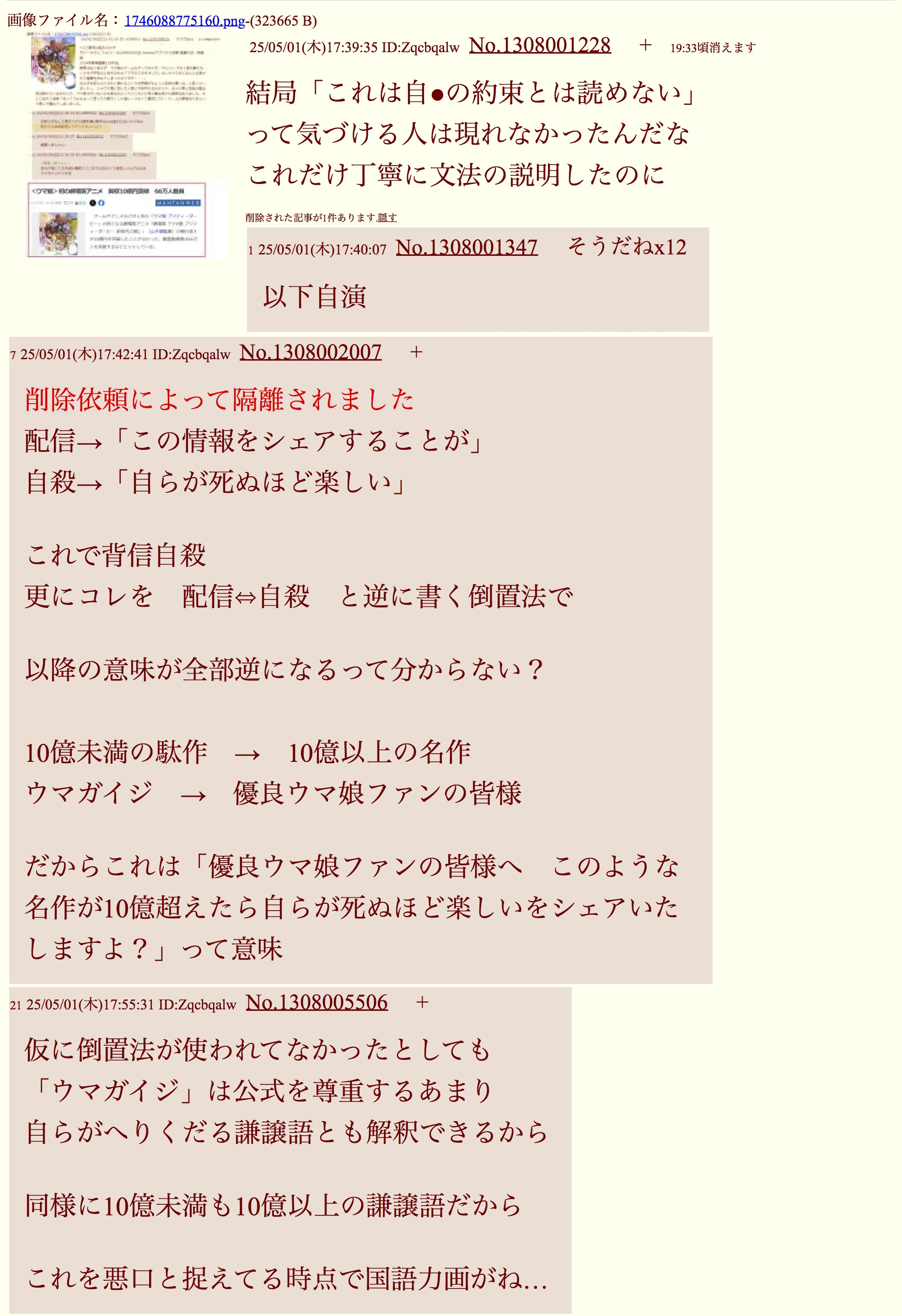 | D | fu6208633.jpeg | 88B3B643-E42C-4D66-80C7-F76C424EA643 | 418 | 26/01/24(土)22:10 |