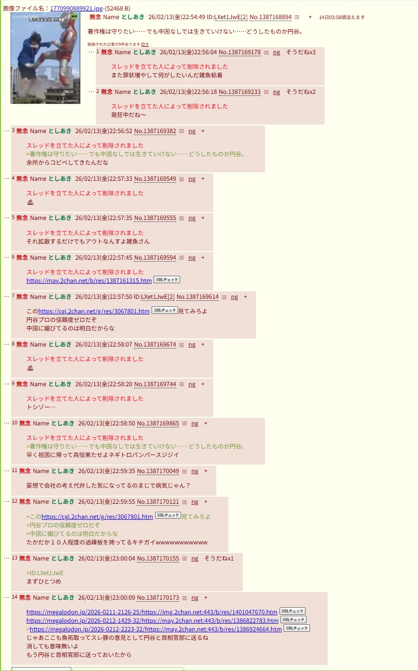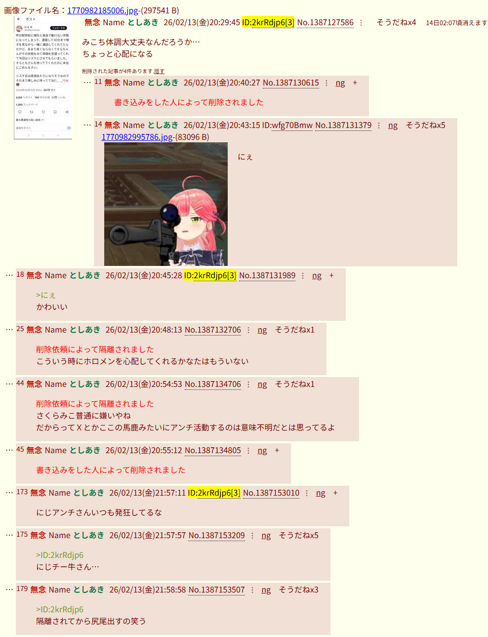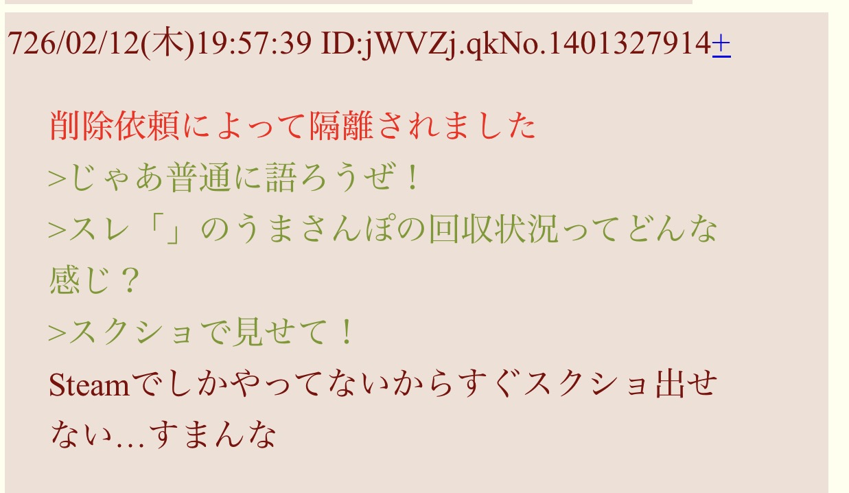 | deleted | deleted | 431 | 26/02/14(土)05:59 | |
