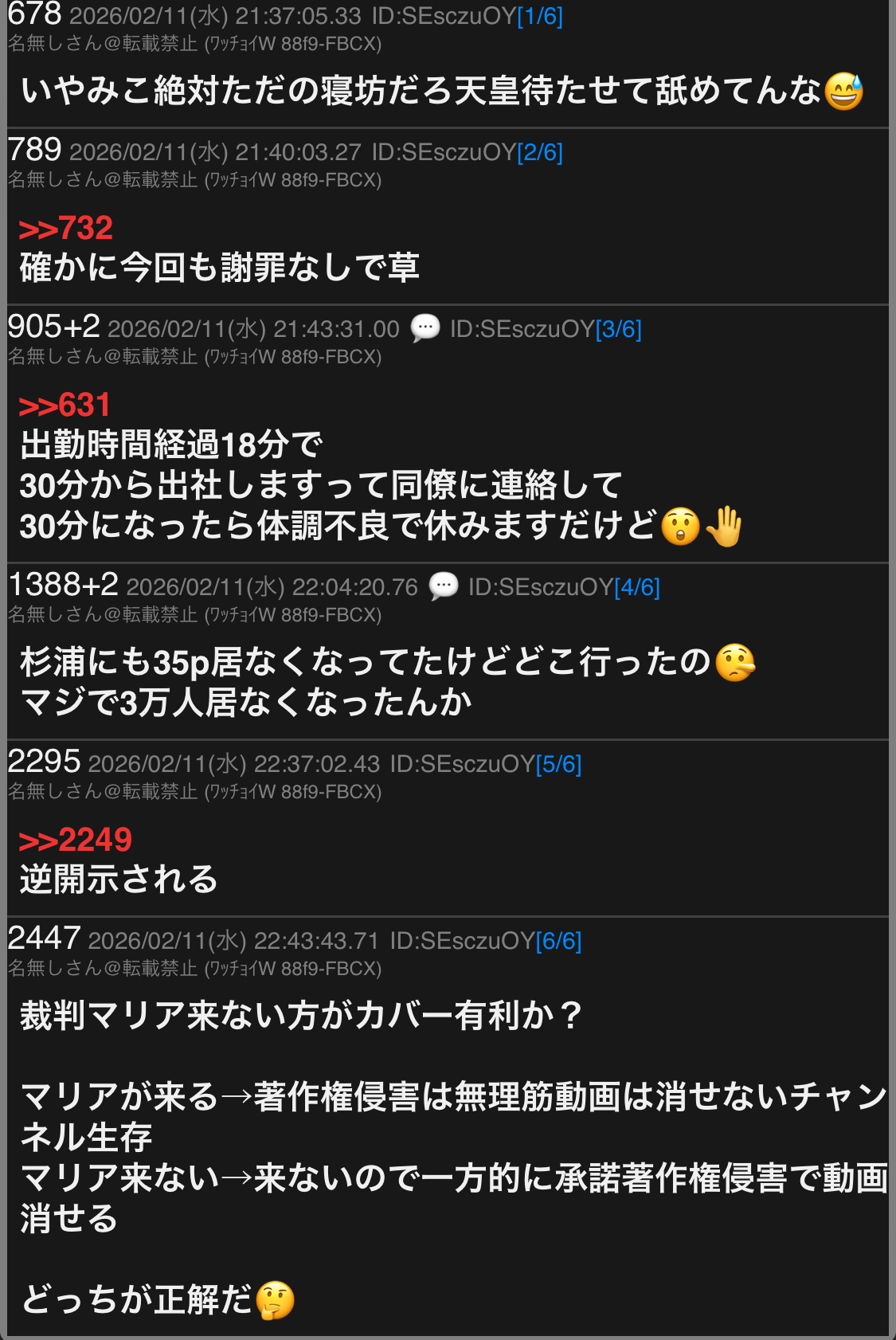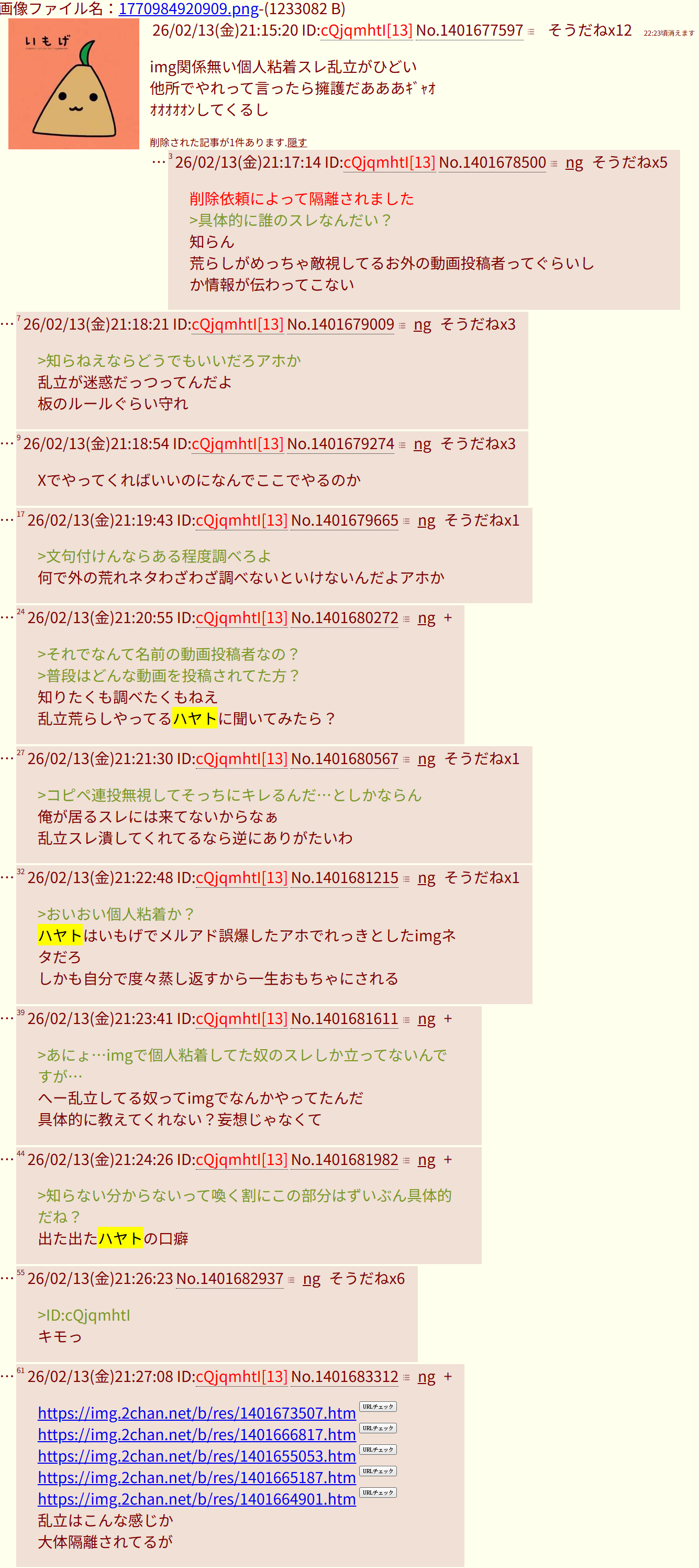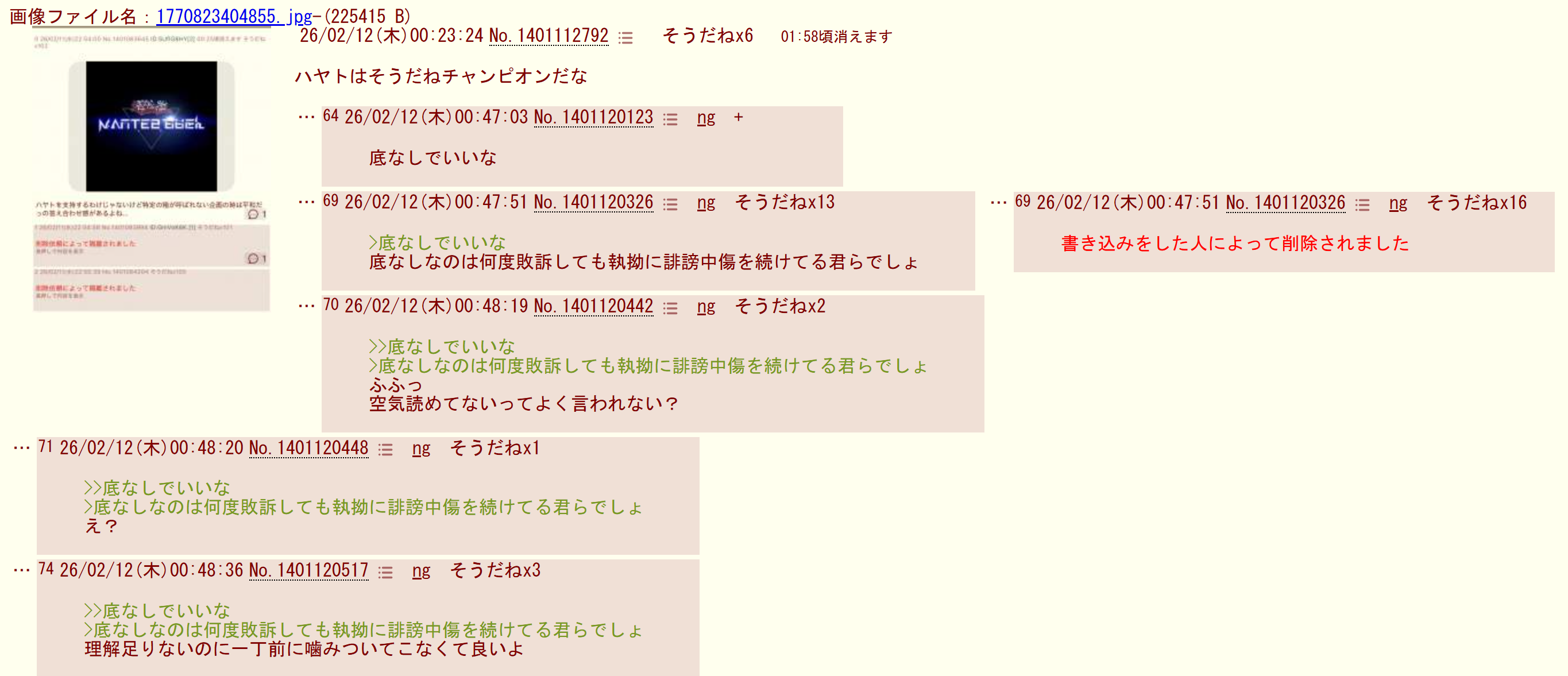 | deleted | deleted | 431 | 26/02/14(土)05:59 | |