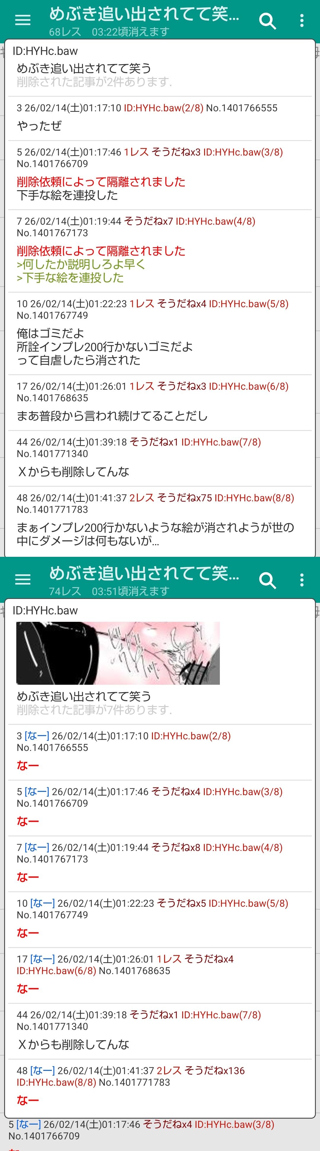 | deleted | deleted | 92 | 26/02/14(土)06:38 | |