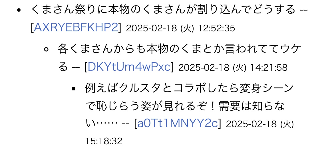 | D | fu6322320.jpeg | fa8b550bf47d860aeffc62877a889a9a3.0.2β FixPatch18-7d/16 | 47 | 26/02/21(土)07:50 |