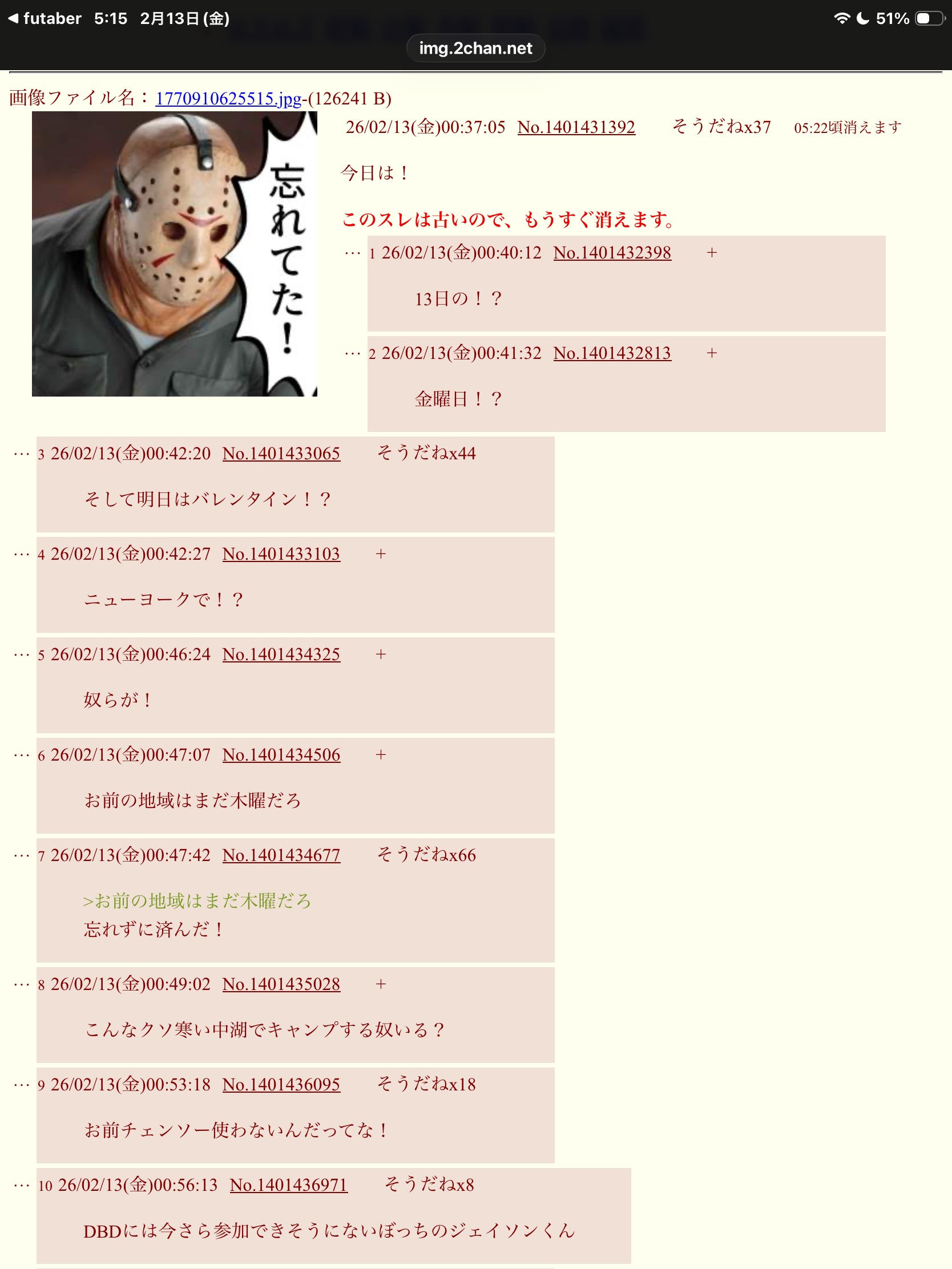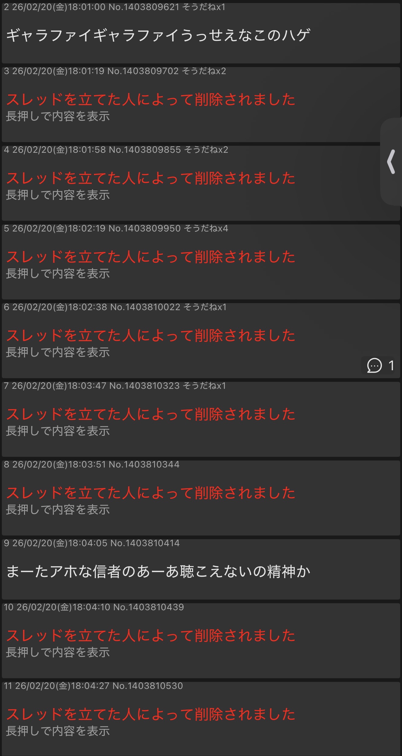 | D | fu6312407.jpeg | BC44D3F2-D611-46A4-AB1F-6EDC4E47B713 | 335 | 26/02/18(水)19:44 |