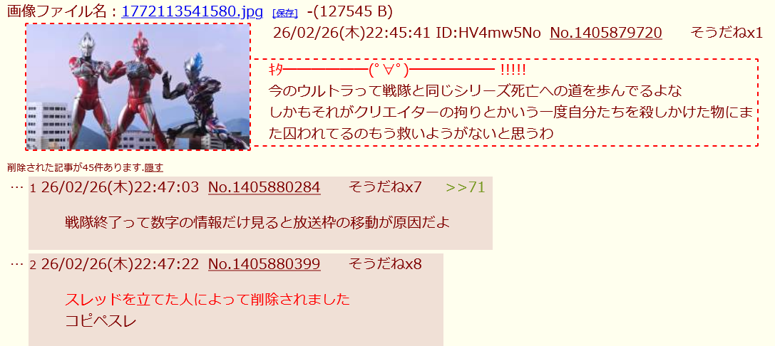 | deleted | deleted | 1225 | 26/02/28(土)03:32 | |