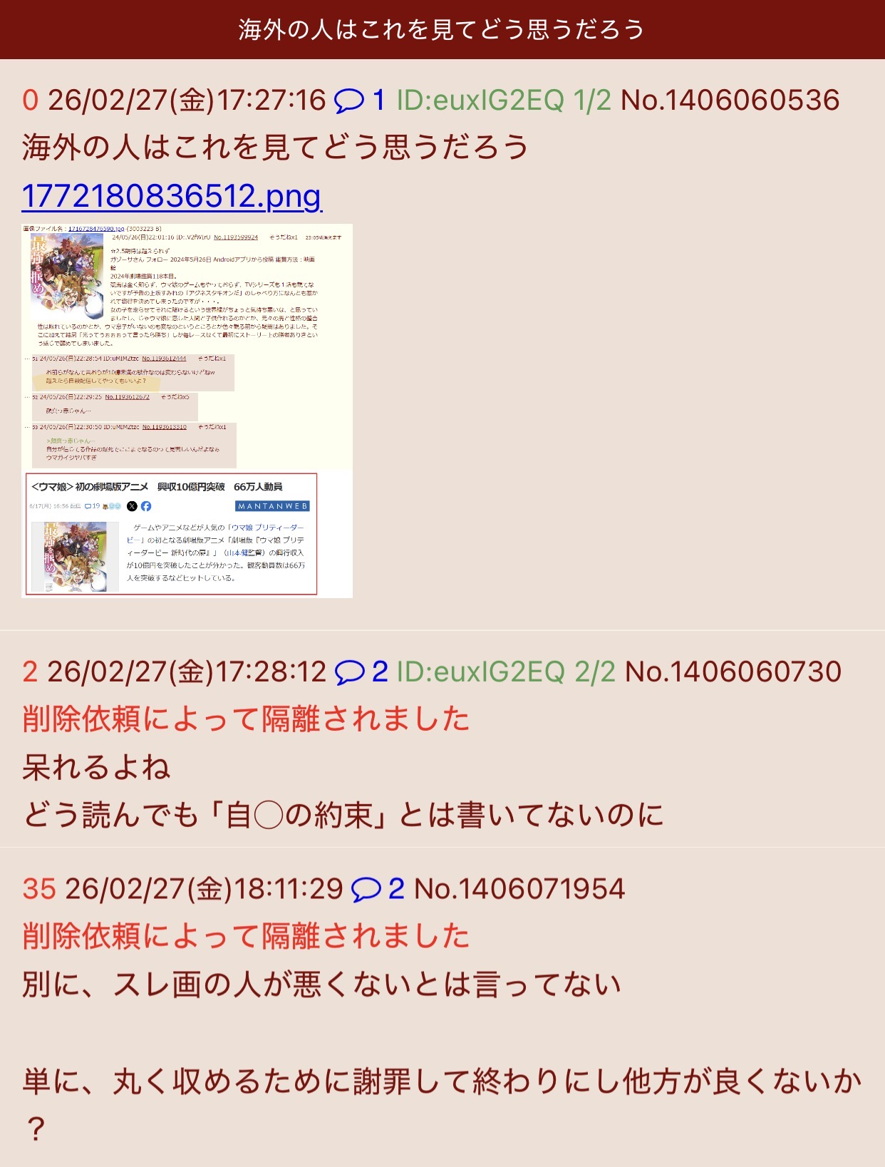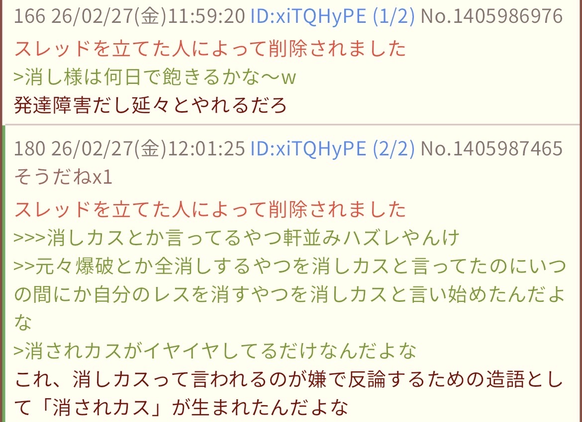 | deleted | deleted | 284 | 26/02/28(土)05:26 | |