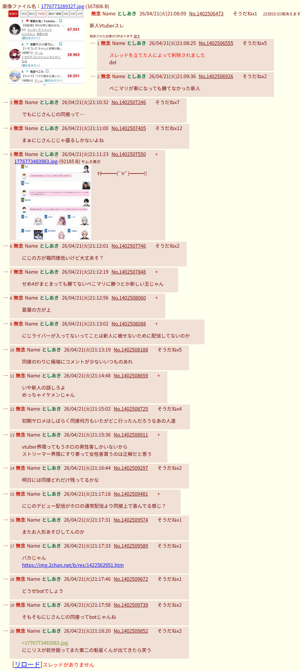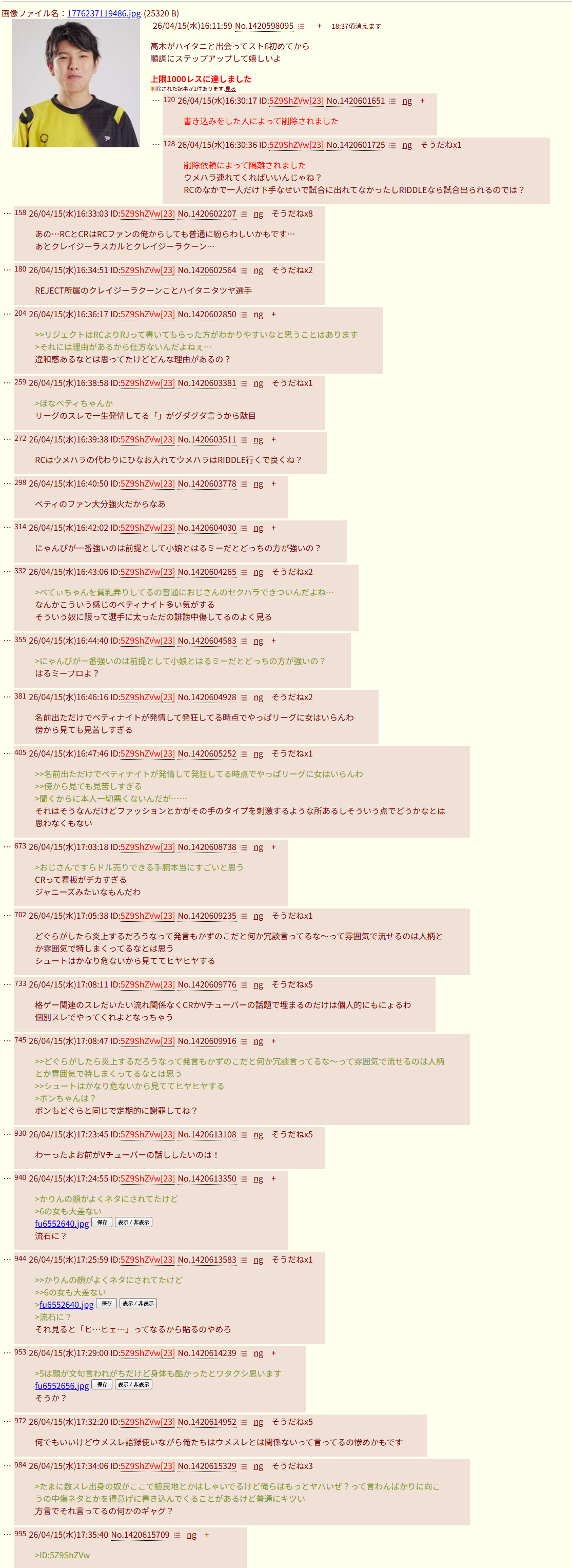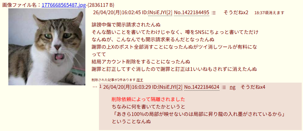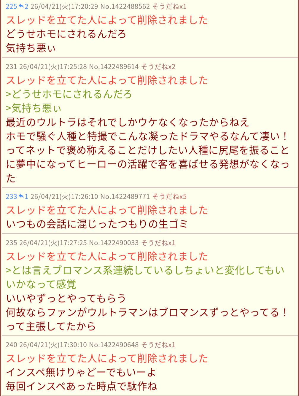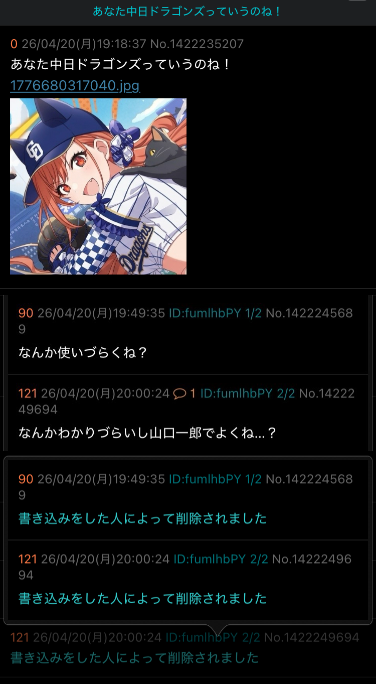 | deleted | deleted | 1504 | 26/04/20(月)16:27 | |