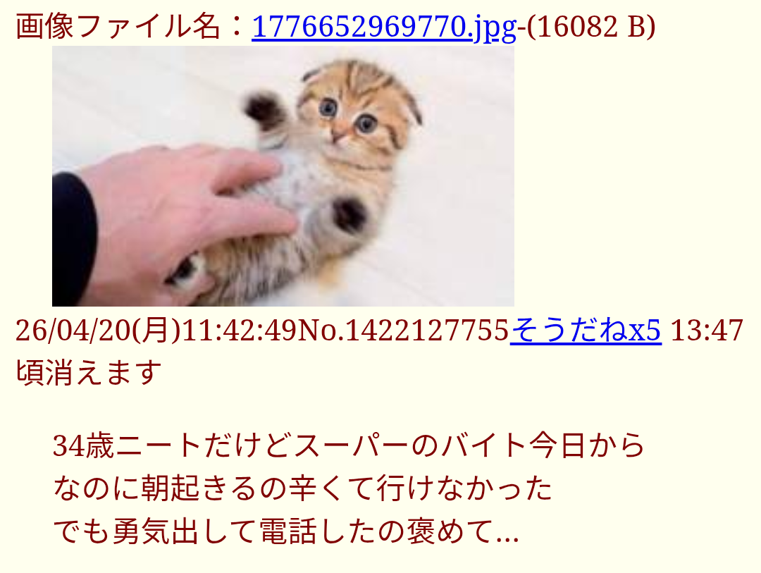 | D | fu6574388.jpeg | 480 | 26/04/20(月)16:31 | |