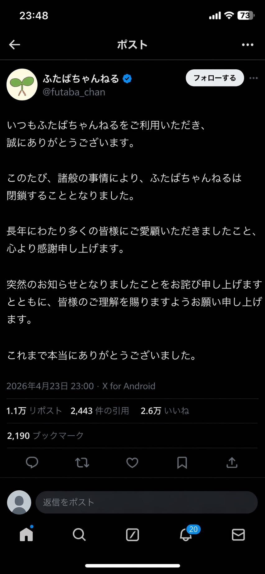 | deleted | deleted | 94 | 26/04/23(木)13:35 | |
