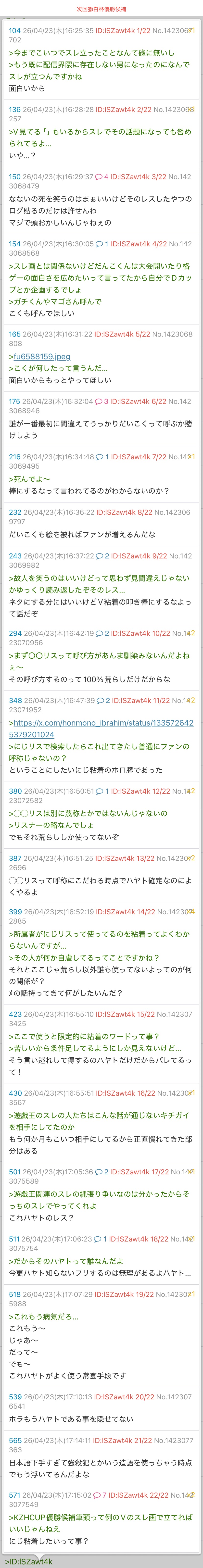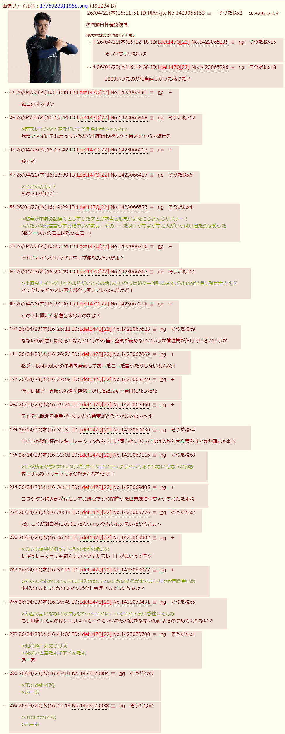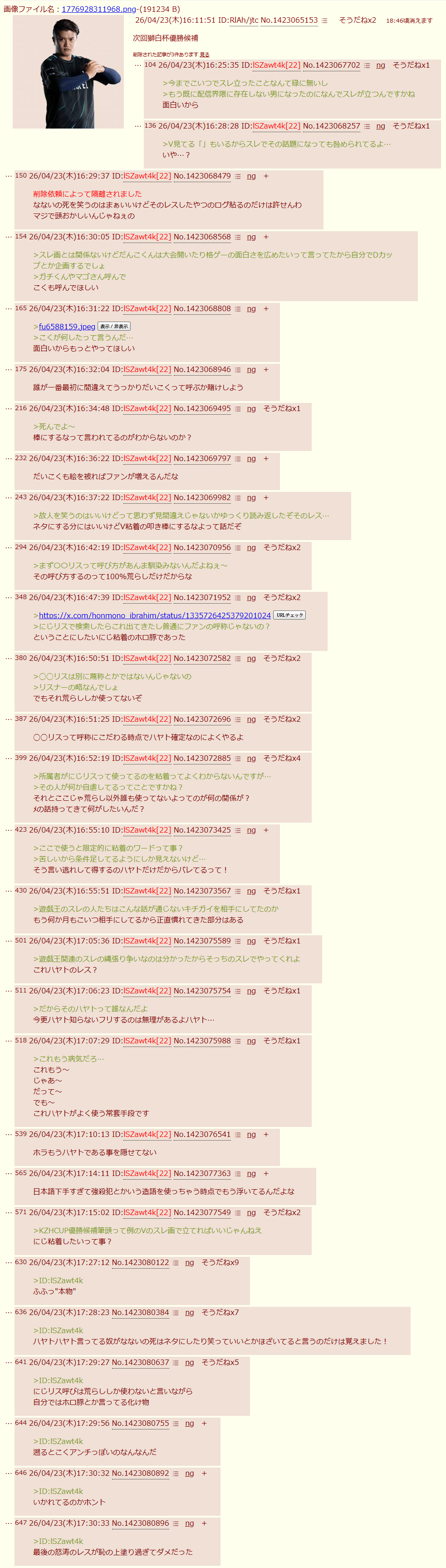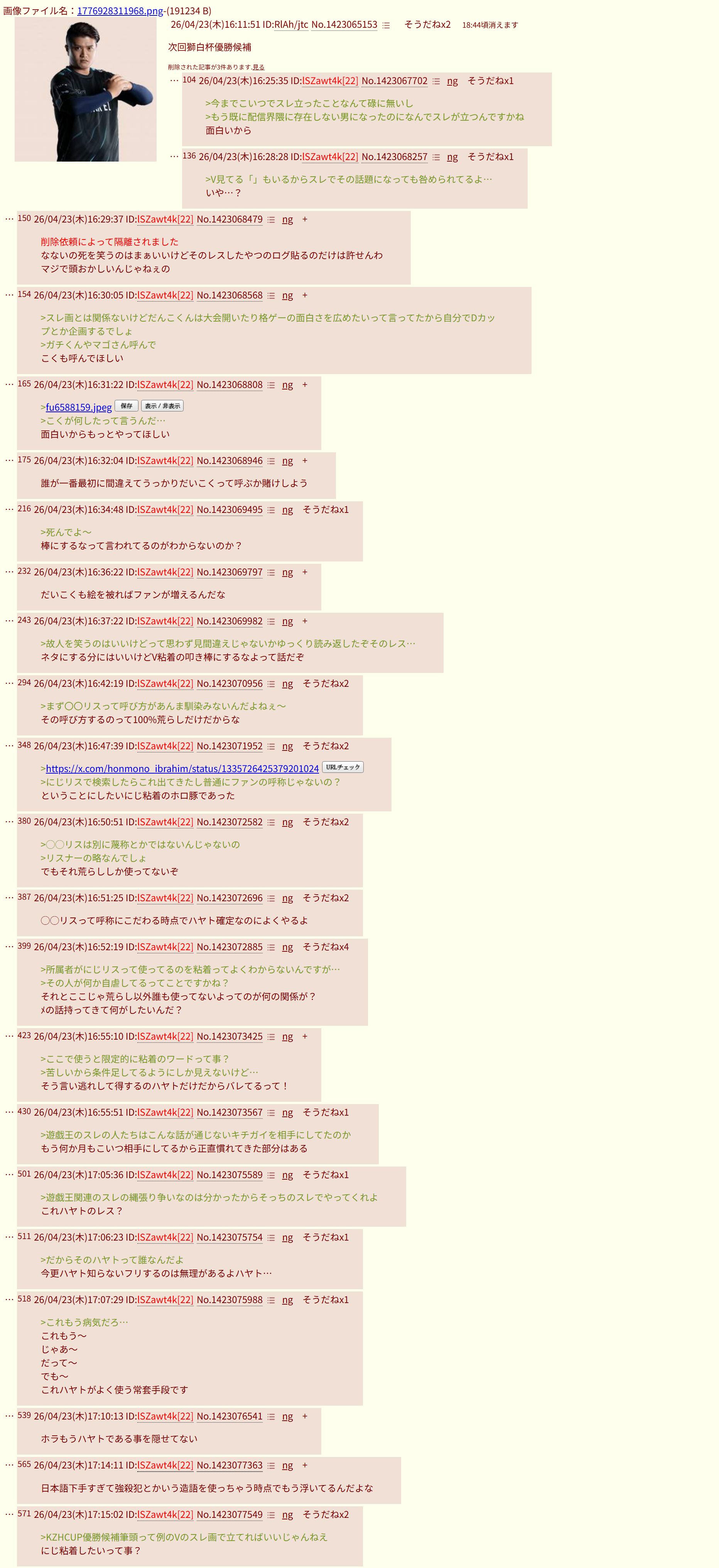| D | fu6587616.png | 現実見れない負け犬ラレ男ケンサンキューな | 413 | 26/04/23(木)13:43 |