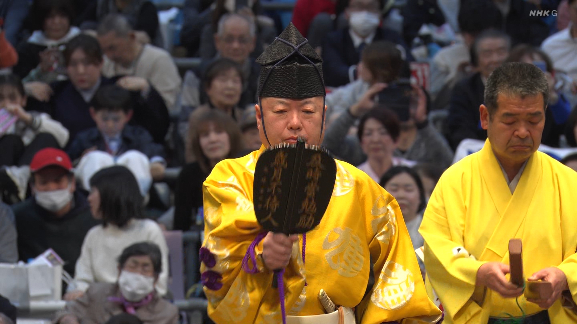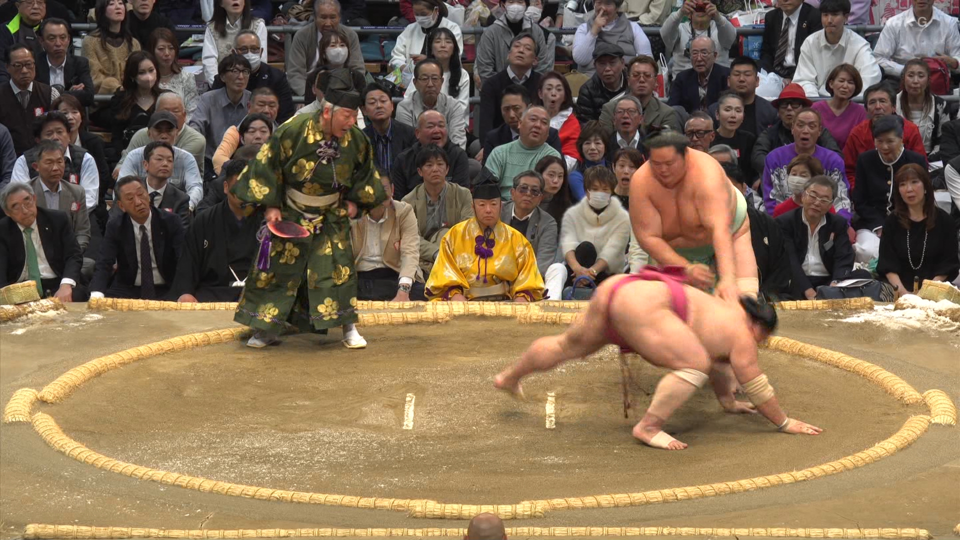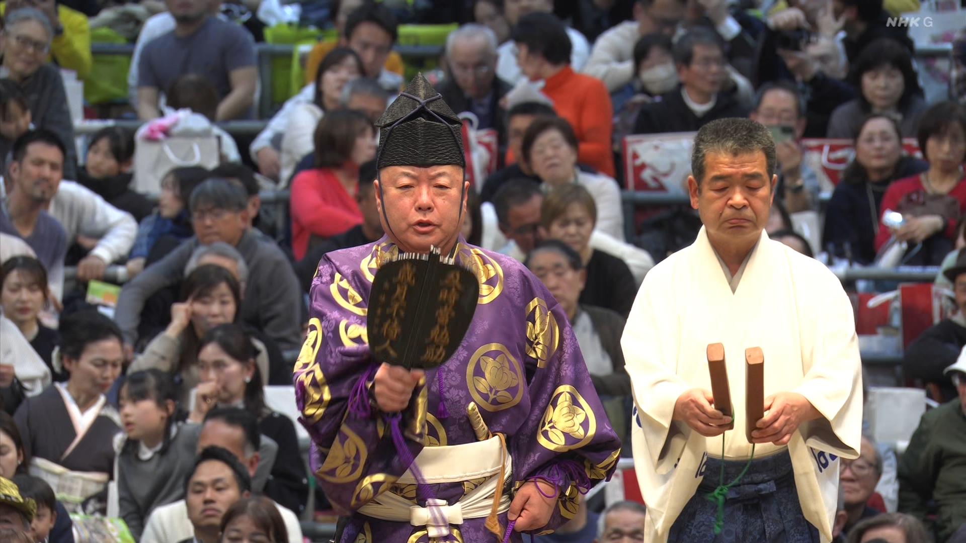 【解説】正面 琴風 浩一〔元大関〕、向正面 立浪親方〔元小結 旭豊関〕
