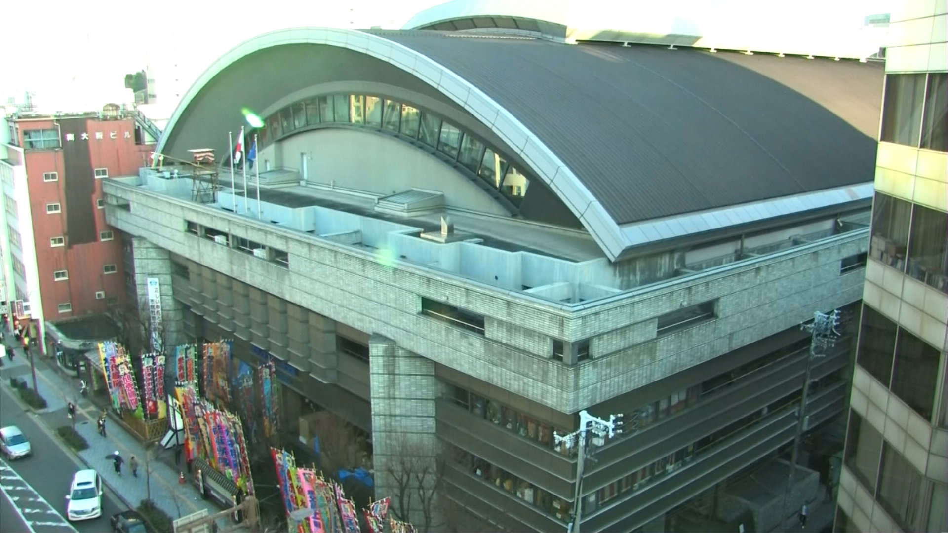 【解説】正面 春日野親方〔元関脇 栃乃和歌関〕、向正面 錦島親方〔元小結 千代鳳関〕