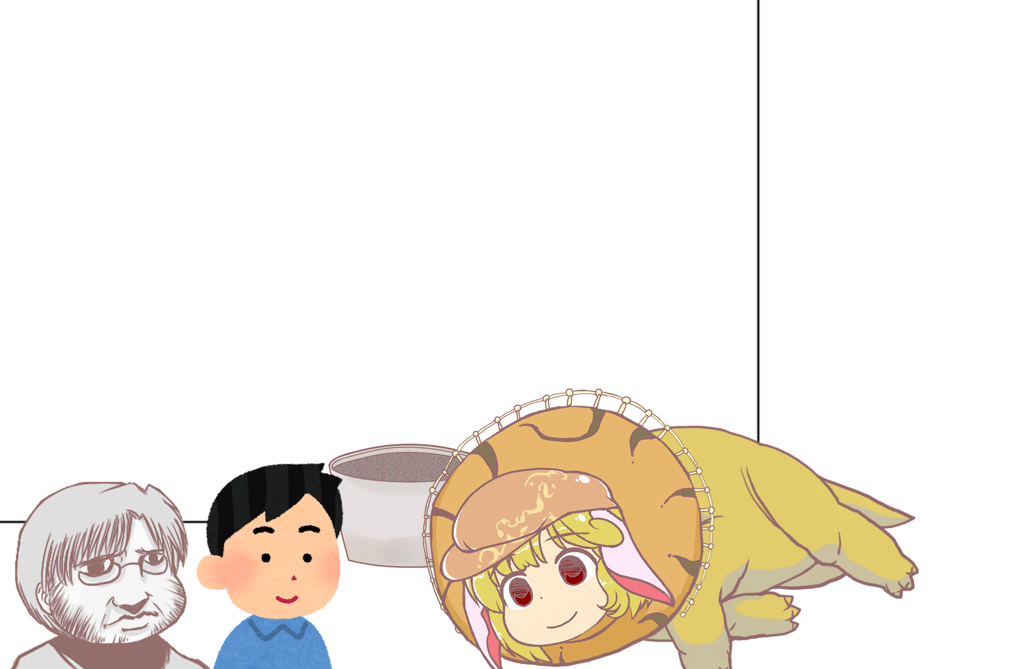 そうして夕方になると競馬場でウマおっさんの大レースに挑んでいた慧音先生が寺子屋に戻ってきました