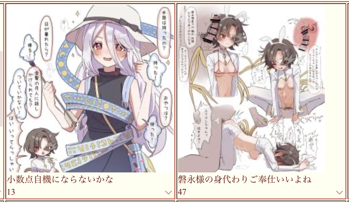 | … | 13無題Nameとしあき 26/02/19(木)01:05:26No.18166054そうだねx1文ちゃんだけそうなるのは不公平だからマミゾウ親分もそうなるべき |