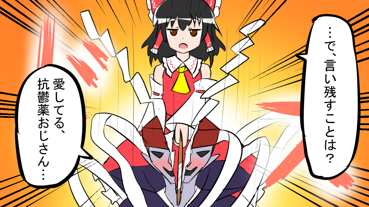 | … | 23無題Nameとしあき 26/03/18(水)19:19:01No.18201125+>魔理沙が妖怪化したら霊夢が存在を消しにくる とよく言われるが消すとすればそんな簡単には終わらないと思う 魔理沙を守る魔理沙派と霊夢派で幻想郷大戦争が始まるかもしれない そのくらい広い交友関係を持っているから |