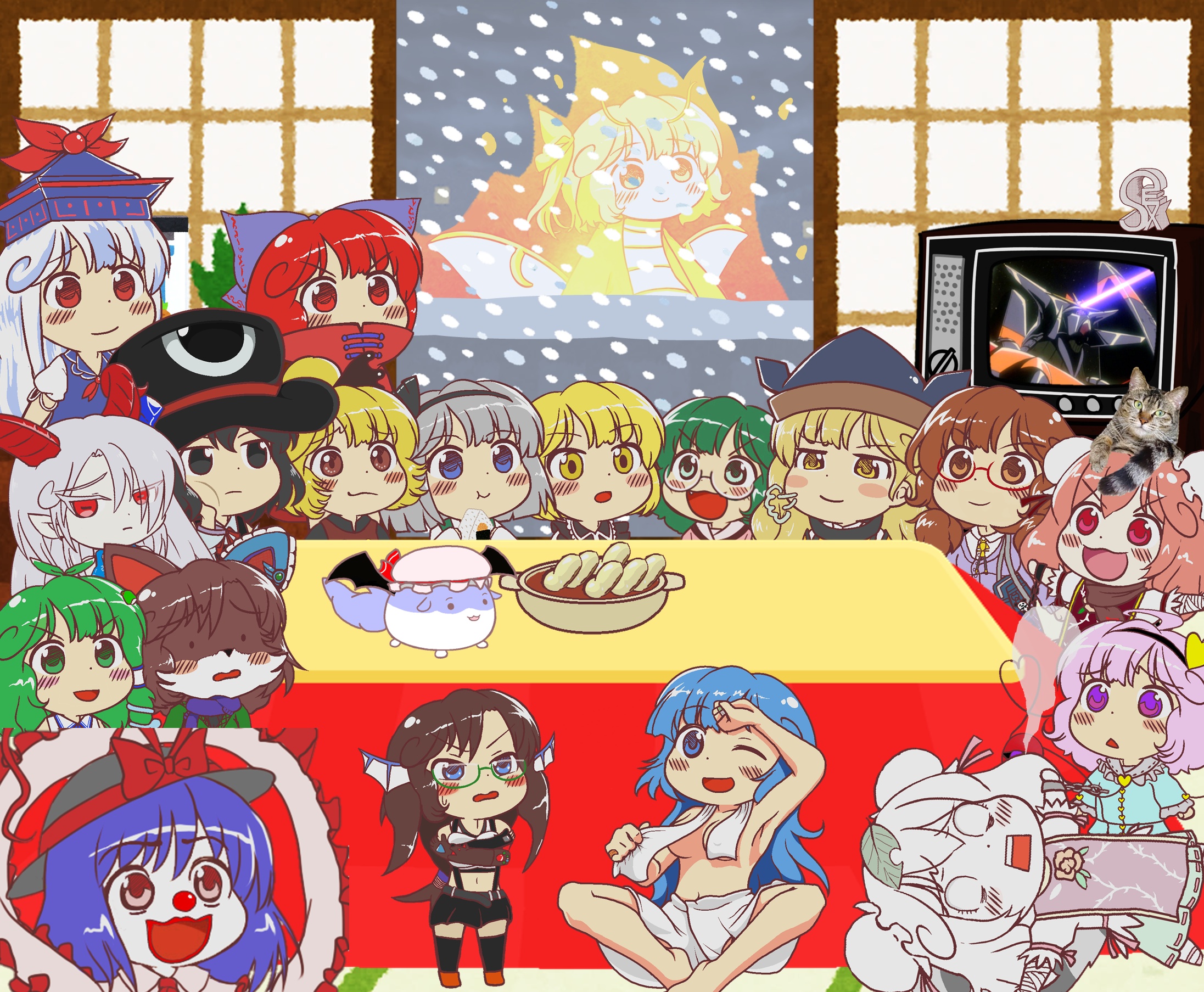 にとりさんはこの寒波に対抗できる灼熱発生マシン「インフェルノナパームデストロイ21号改」を市役所に持ってきました