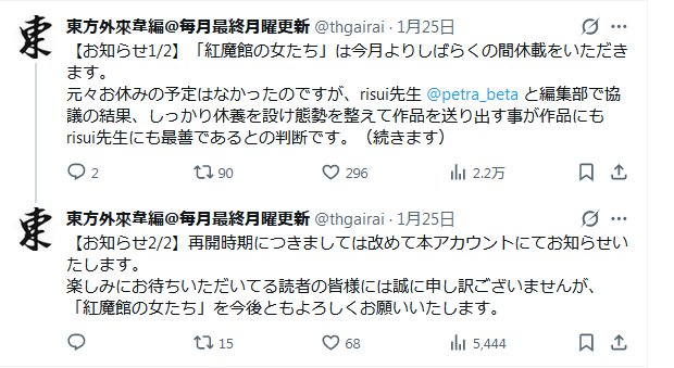 | … | 52無題Nameとしあき 26/01/26(月)15:10:18No.18133807そうだねx1>しばらく休載だってさ |