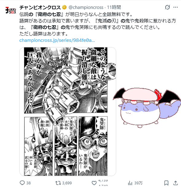 | … | 36無題Nameとしあき 26/01/29(木)23:31:03No.18138376そうだねx4 1769697063432.png-(332285 B) 明日から衛府の七忍全話無料配信 |