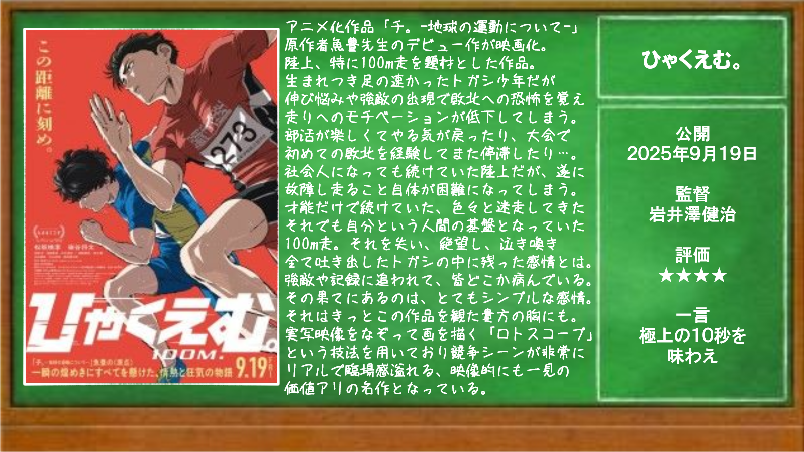 | … | 23無題Nameとしあき 26/03/19(木)22:28:22No.18202703そうだねx2 1773926902539.png-(1707022 B) アニメ映画だと何回も紹介して悪いが『ひゃくえむ。』は観てみて欲しい |