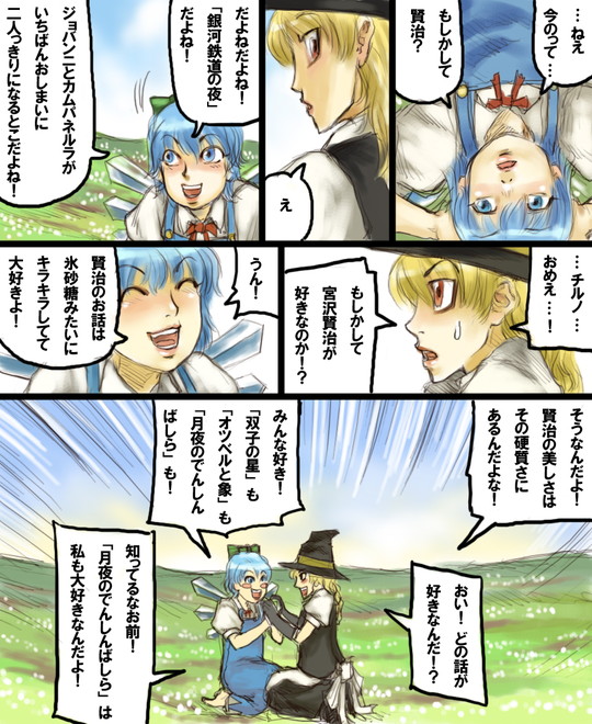 | … | 6無題Nameとしあき 26/03/30(月)18:30:51No.18215858+ 1774863051091.jpg-(156644 B) 雨山電信さんが描いてた奴で「宮沢賢治が好きなチルノと魔理沙」概念があったのを思い出した |
