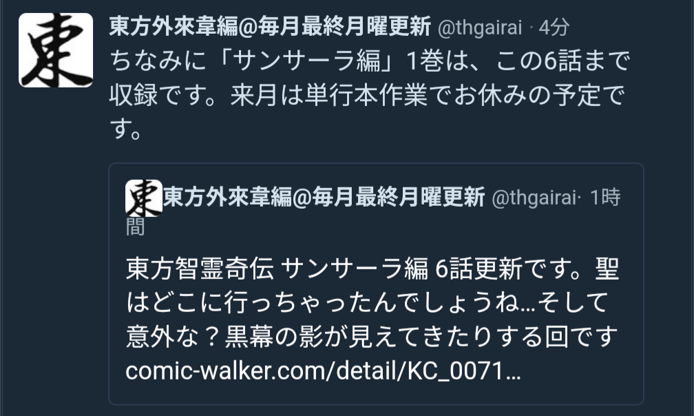 | … | 69無題Nameとしあき 26/03/31(火)12:26:24 ID:7Ml0Xn6QNo.18216832+みずちー2はマミゾウさんに取り憑く前はぬえちゃんに取り憑いてたってことなのかな? |