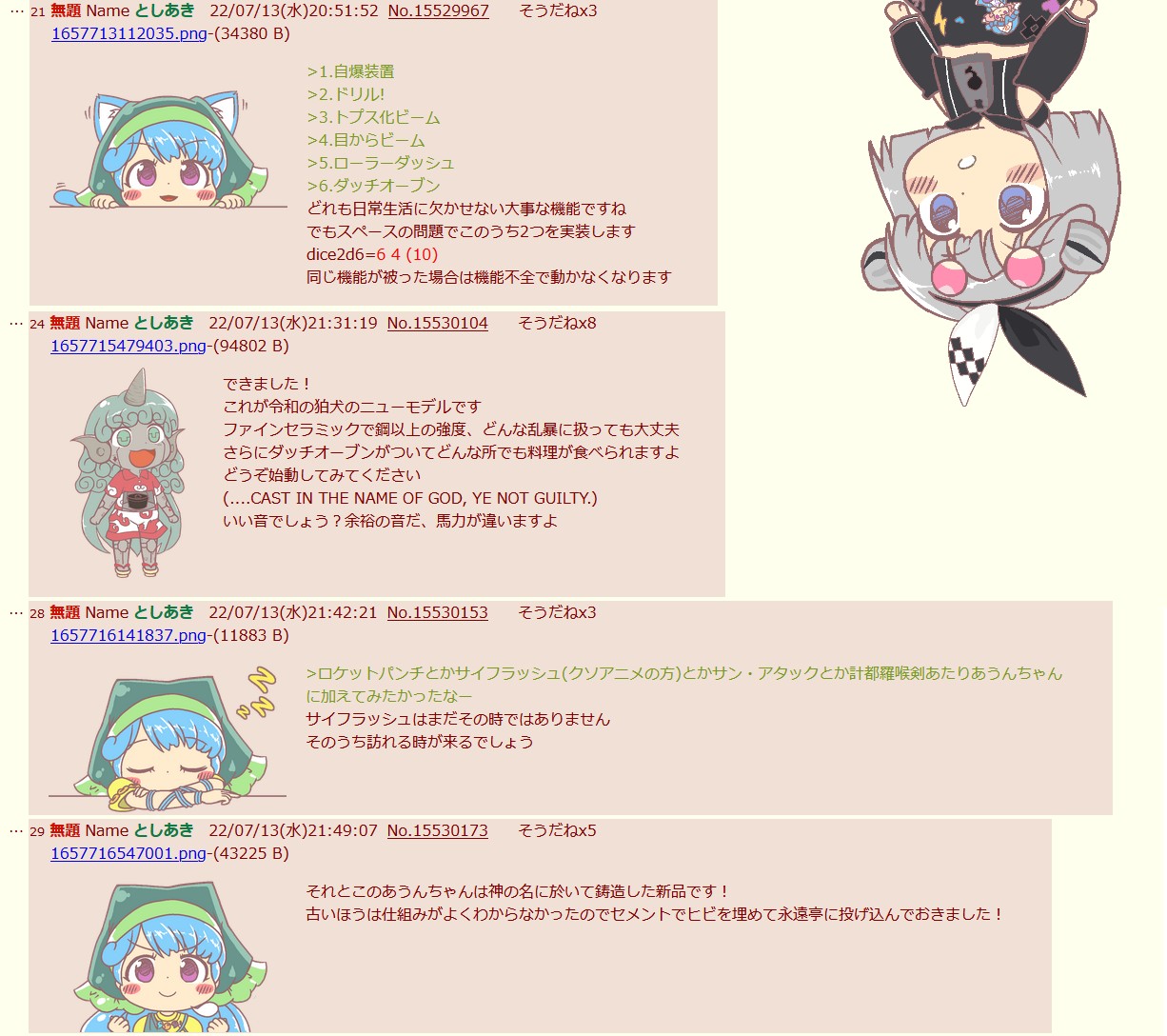 | … | 35無題Nameとしあき 26/04/02(木)20:24:15No.18220086+ 1775129055585.png-(13185 B) その設定ならちび磨弓×3で三神合体ロボが良かったわね |