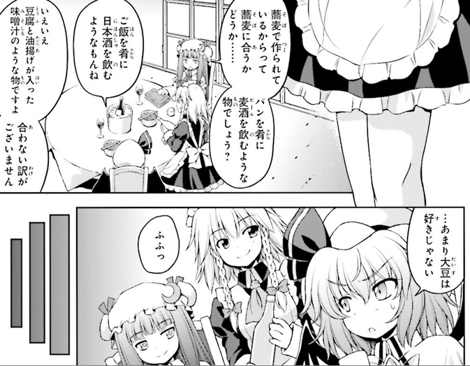 レミリアの納豆とか紫苑の焼き味噌とか藍の油揚げは有名だけど他のキャラも結構宴会とかで大豆製品食べてそう