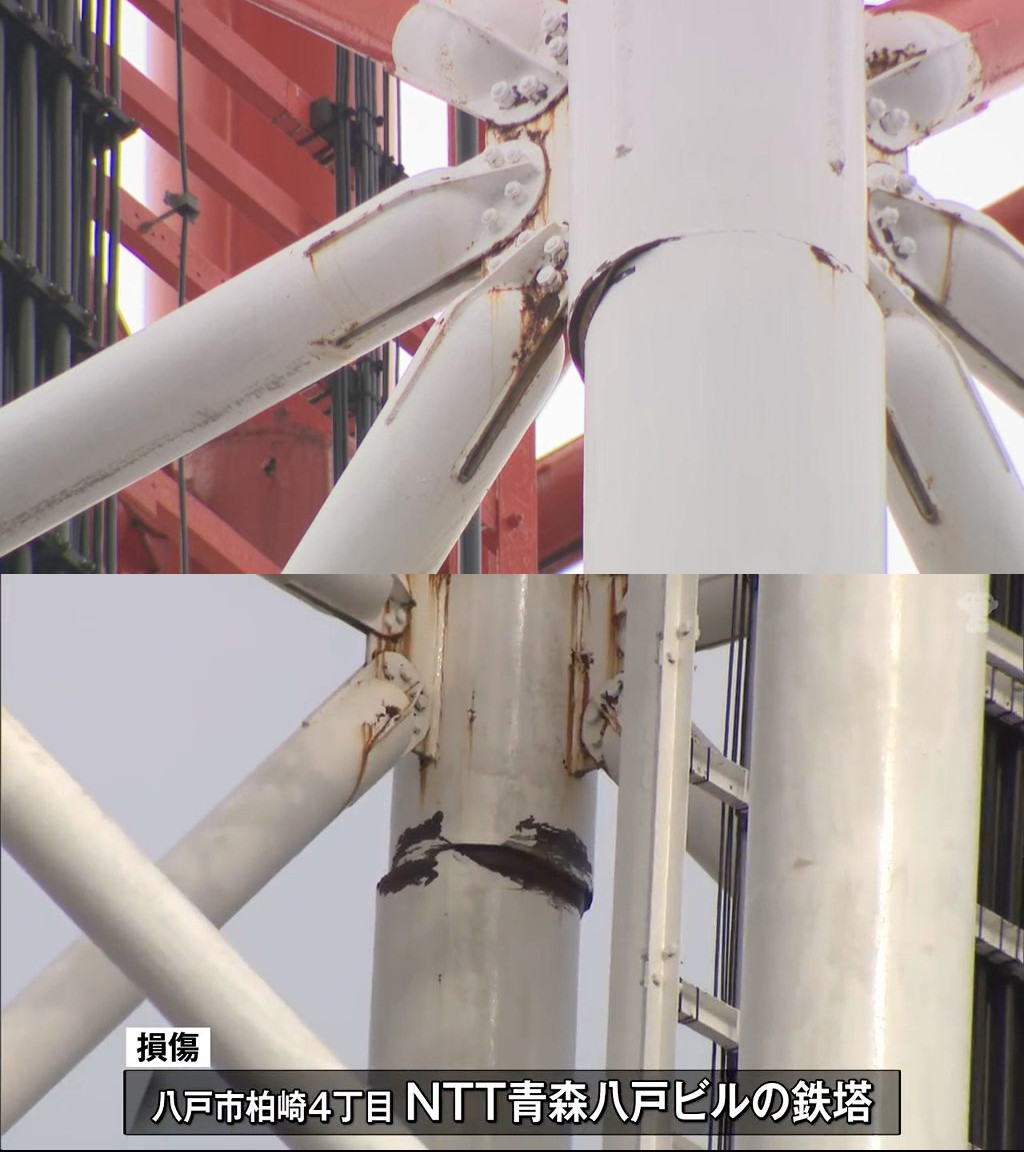 >【速報】地震で70m鉄塔の柱が破断 周辺に避難指示・国道45号で通行止め 70年製でNTT青森八戸ビルに設置 修復作業に約1か月見込む 最大震度6強の八戸市 【随時更新】(ATV青森テレビ) - Yahoo!ニュース