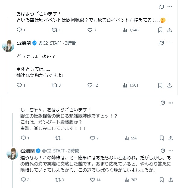 … | 93無題Nameとしあき 25/10/09(木)19:40:47No.25284818+ 1760006447167.jpg-(80887 B) ![]() 「たぶん絶対に当たらないっ!」はC2垢のリプで「この姉妹は、そー簡単にはあたらないと思われ」らしいので次イベ実装艦娘の意外性を指してそうね |