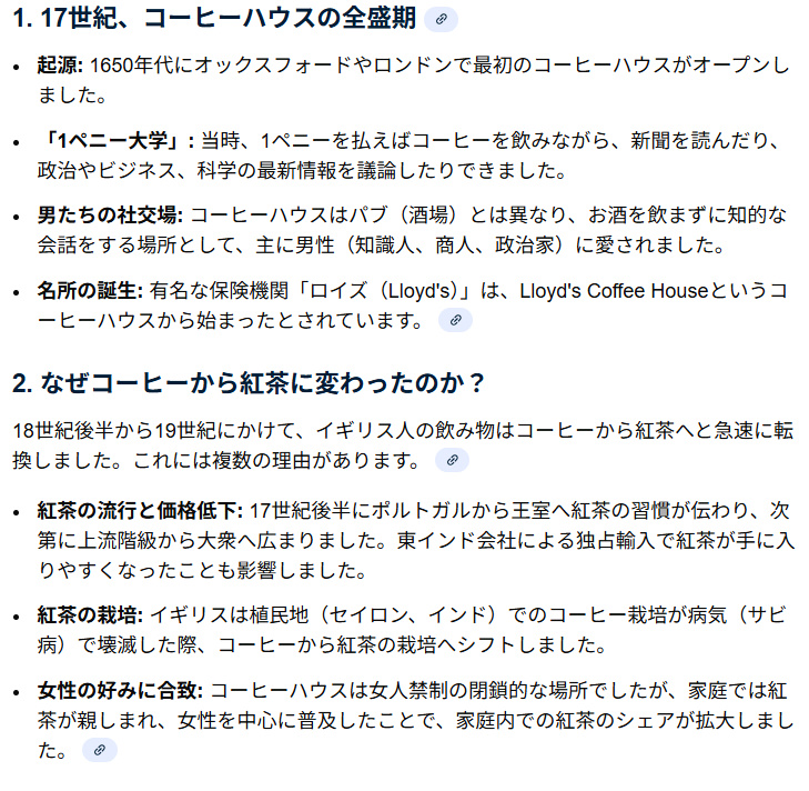 | … | 9無題Nameとしあき 26/01/20(火)20:15:33No.25433119そうだねx1 1768907733261.jpg-(379668 B) 英国ではもともとコーヒー文化だったがコーヒー豆が凶作になった際代替えの紅茶がのまれるようになったと聞いた覚えがあった |