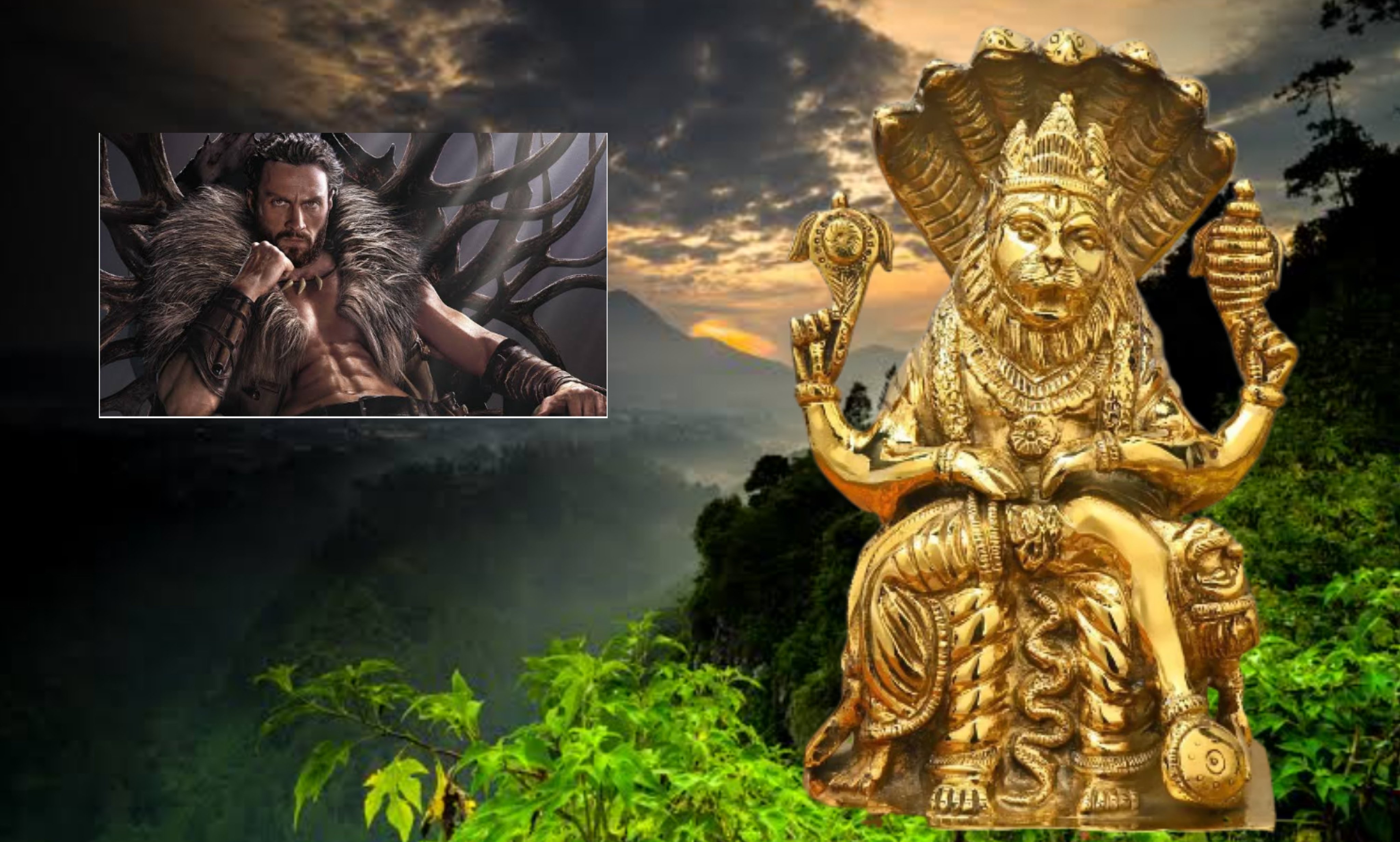 ナラシンハ(Narasimha)は、ヒンドゥー教のヴィシュヌ神の第4のアヴァターラ(化身)で、獅子の頭と人間の体を持つ「人獅子」の姿で崇拝される神。悪魔ヒラニヤカシプを倒したその絶対的な力と、信者プラフラーダを守る慈愛の両面を持ち、特に南インドを中心に熱狂的に信仰されている。