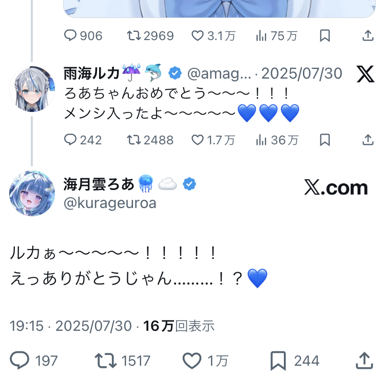 … | 74無題Name名無し 25/09/29(月)22:33:41 IP:106.130.*(au-net.ne.jp)No.1893377+今日のルカいつもとは別の意味で様子がおかしいな… |