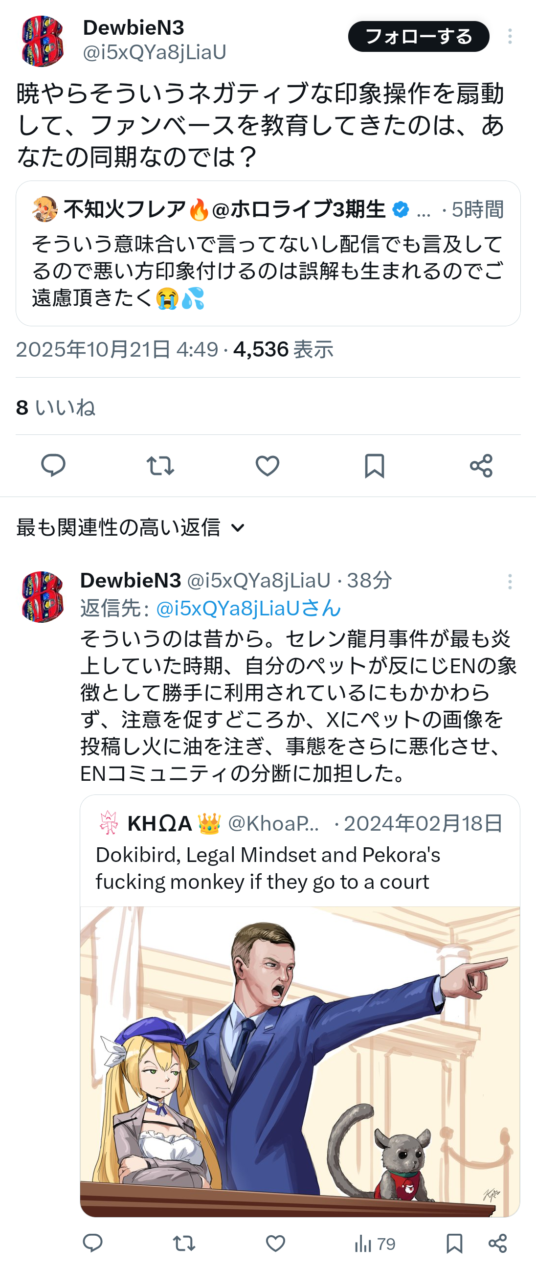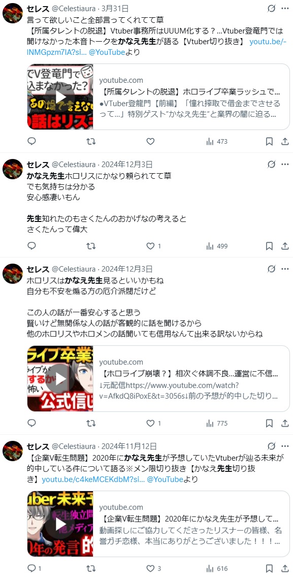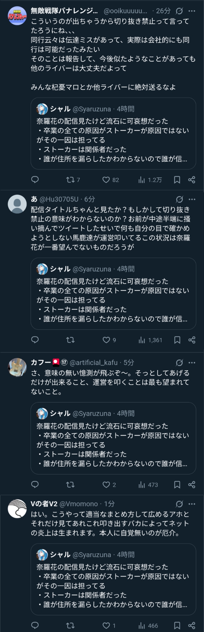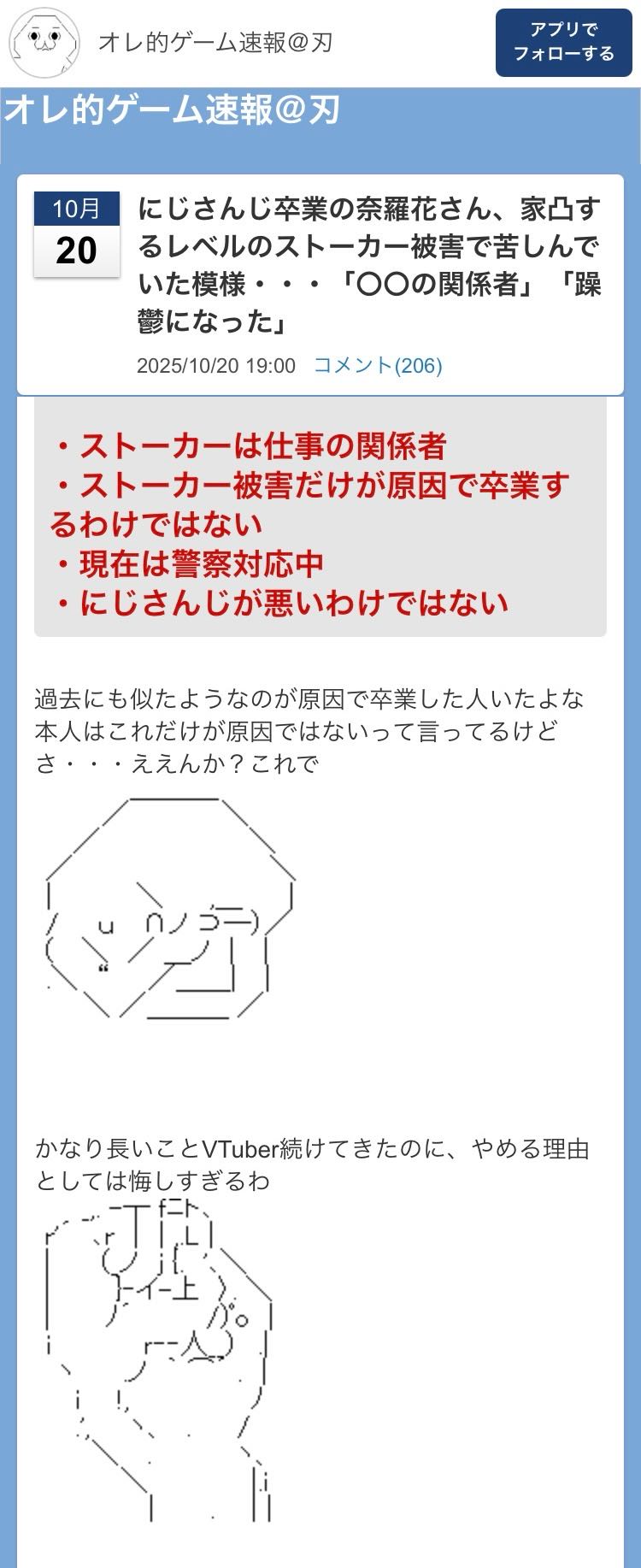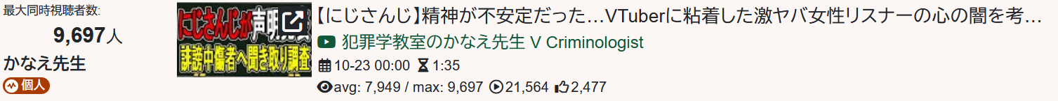 | … | 42無題Name名無し 25/10/20(月)19:59:34No.1902690そうだねx12仕事に関わってる奴がストーカーしてるなら他のライバーも危ないだろ… |