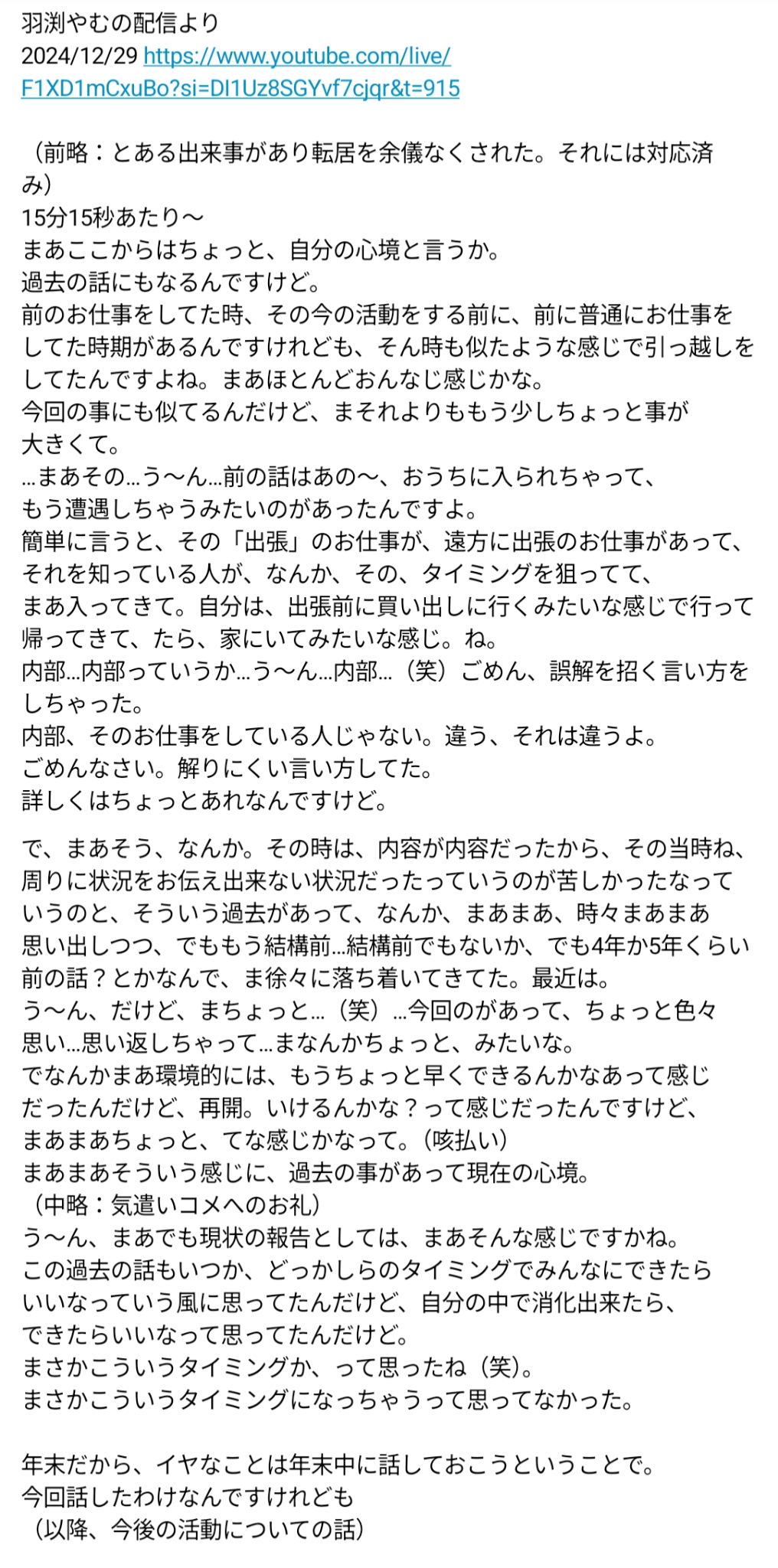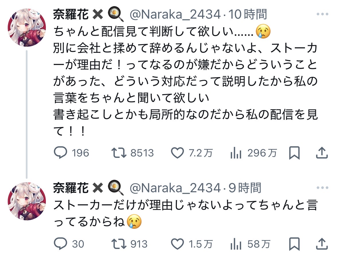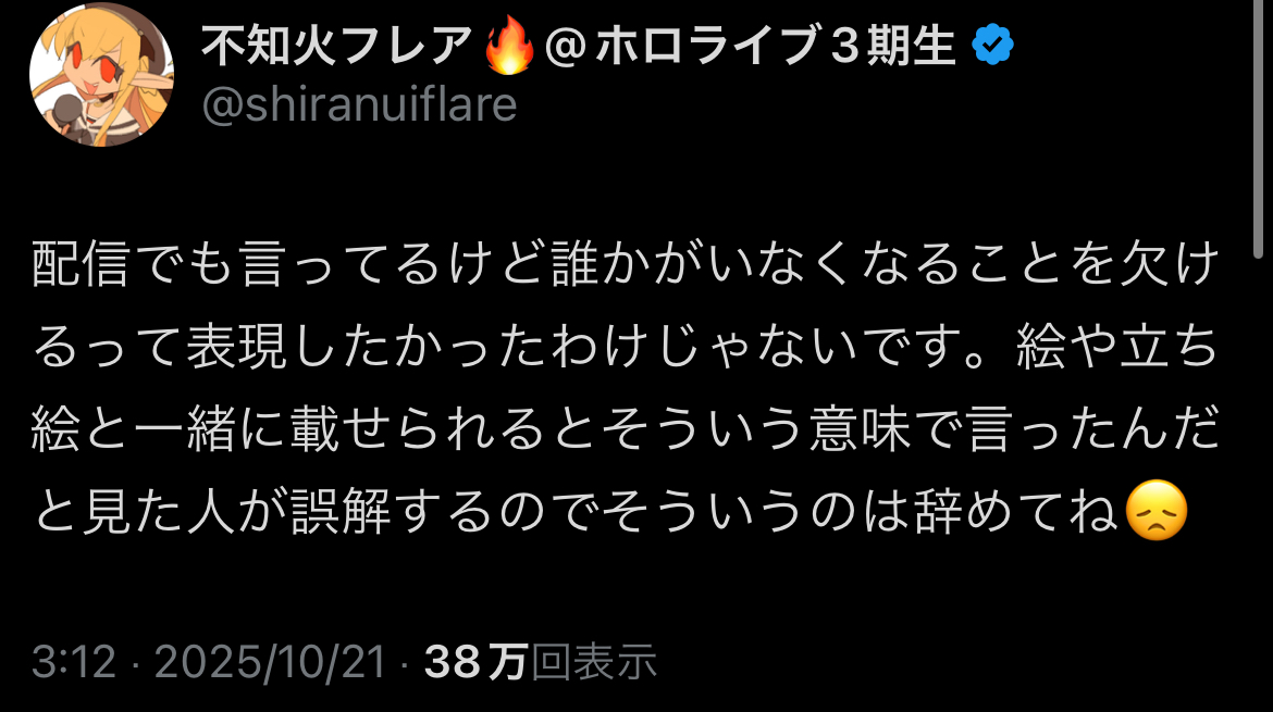 | … | 17無題Name名無し 25/10/20(月)19:41:53No.1902664そうだねx32 1760956913653.jpg-(953013 B) >ストーカー被害について本人が語っていたので乗せておく |