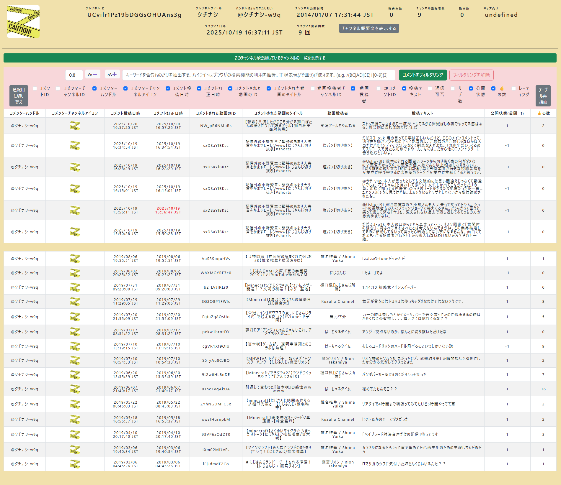 | … | 7無題Name名無し 25/10/20(月)19:25:34No.1902650そうだねx5 1760955934925.png-(92025 B) ■動画のコメント検索をしたり、過去のコメントを見れるサイト |