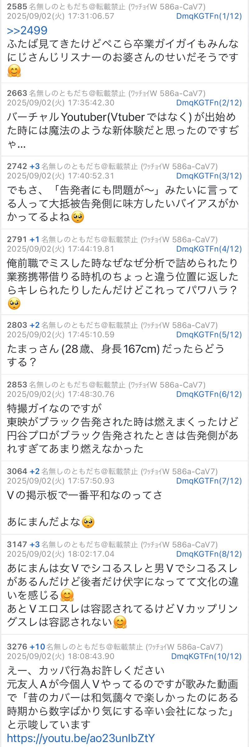 | … | 45無題Name名無し 25/10/20(月)20:01:45No.1902693そうだねx2>仕事に関わってる奴がストーカーしてるなら他のライバーも危ないだろ… |