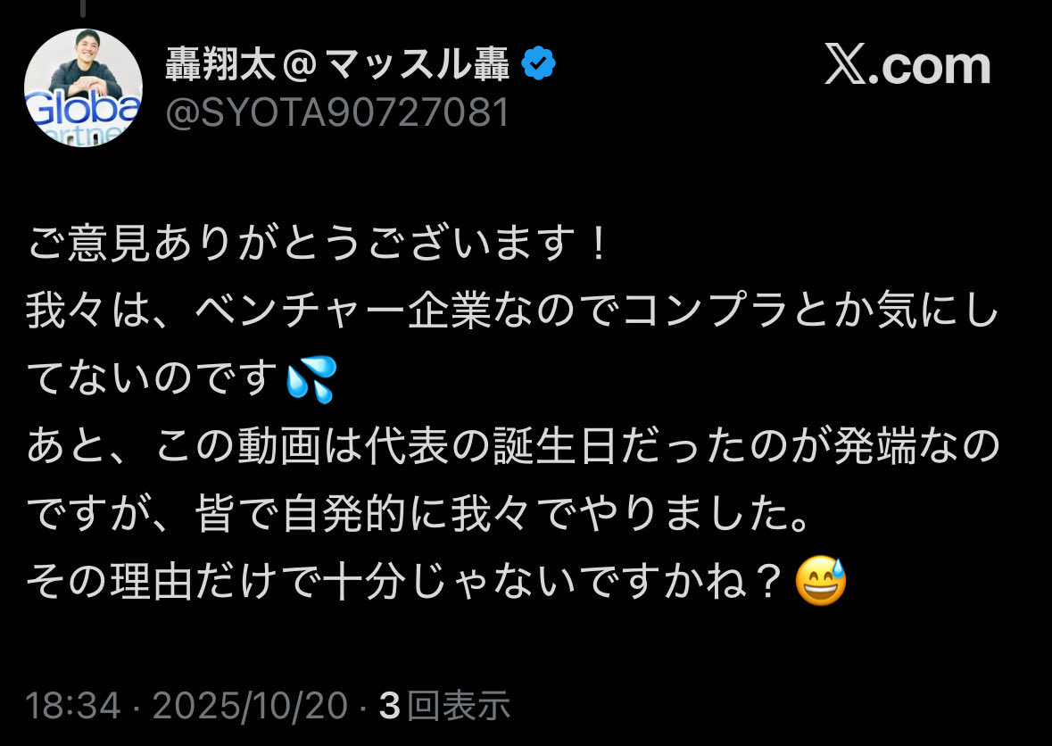 | … | 46無題Name名無し 25/10/20(月)20:01:55No.1902694そうだねx14それなりの立場の役員なりCEOなりが声明出すレベルまで来てると思うんだけどな |