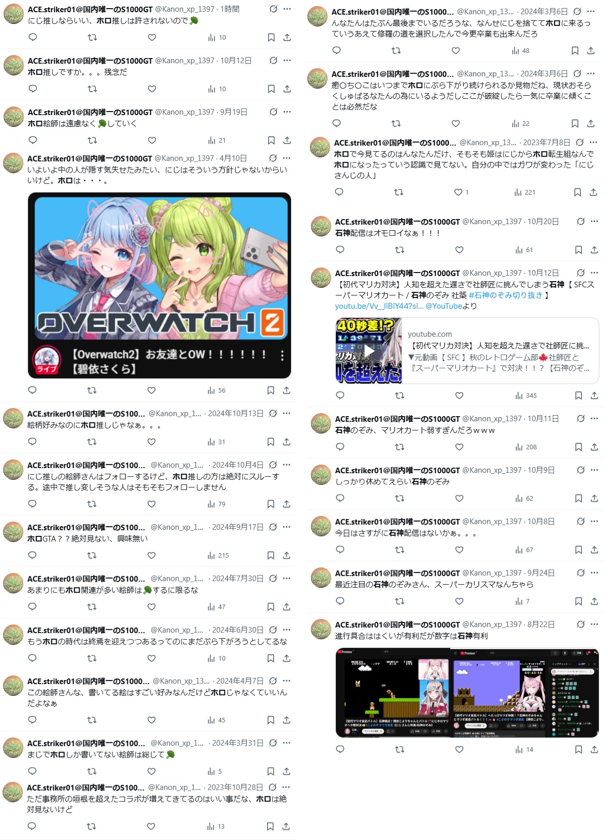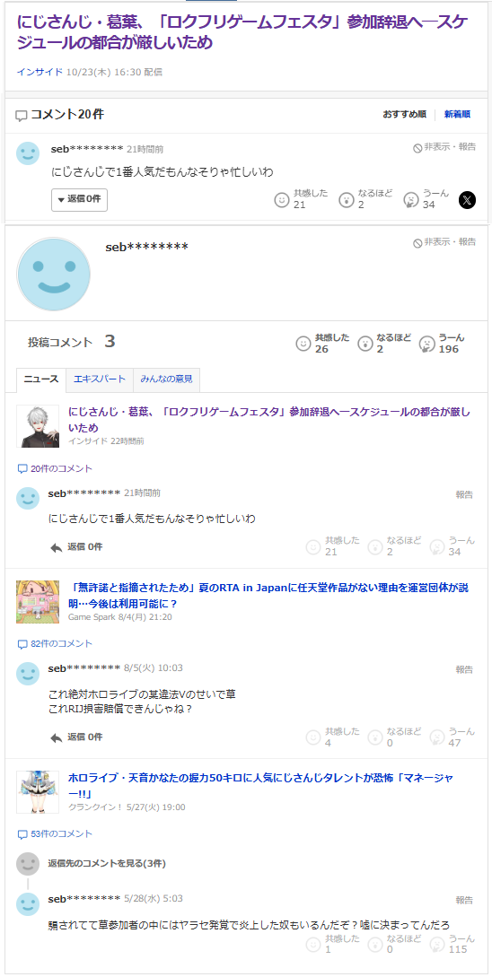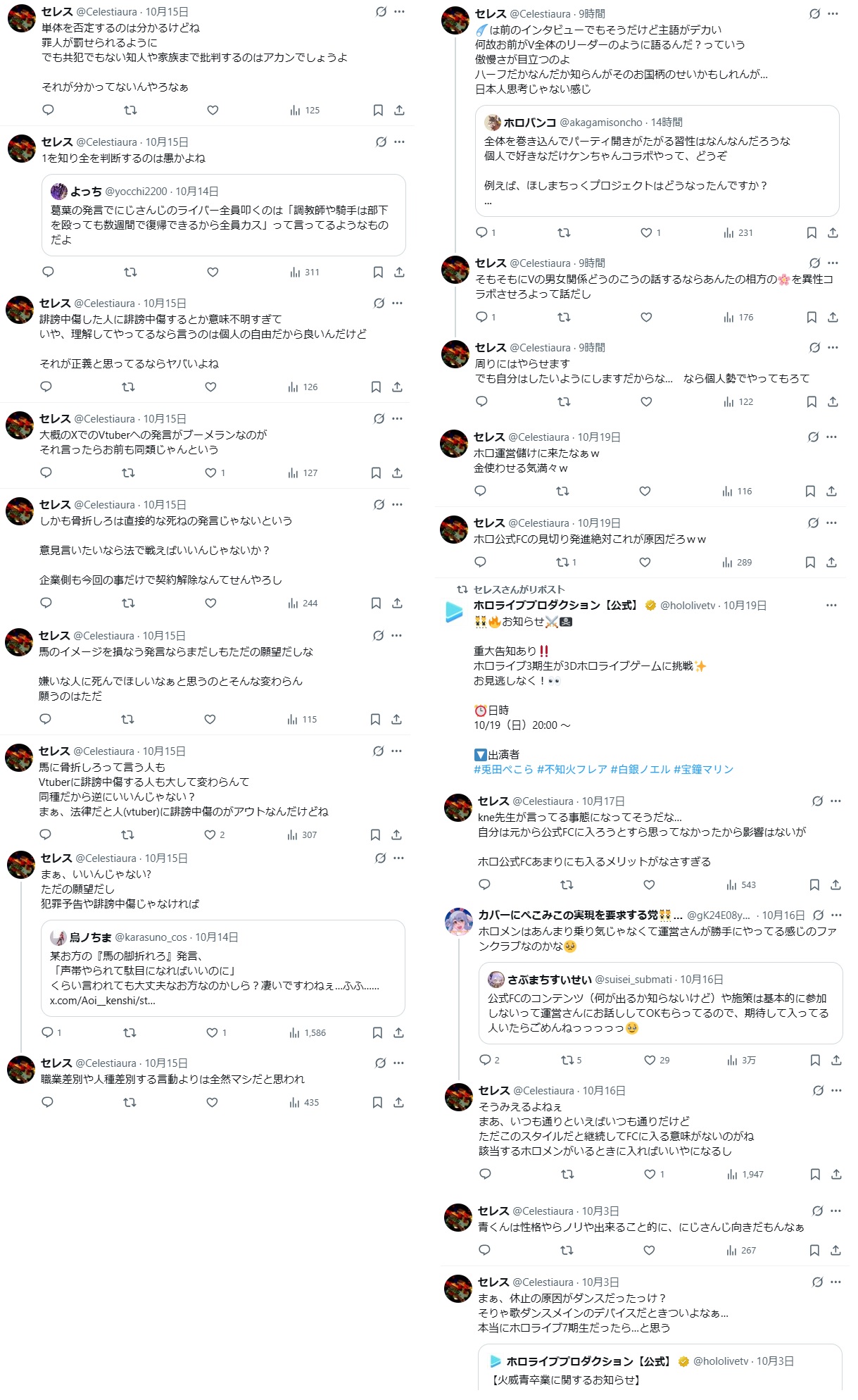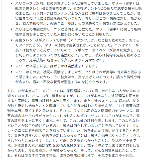 | … | 9無題Name名無し 25/10/20(月)19:27:45No.1902653そうだねx8※このスレはにじさんじの運営、ライバー、リスナーの迷惑行為や道徳に反する行動を収集するスレです |
