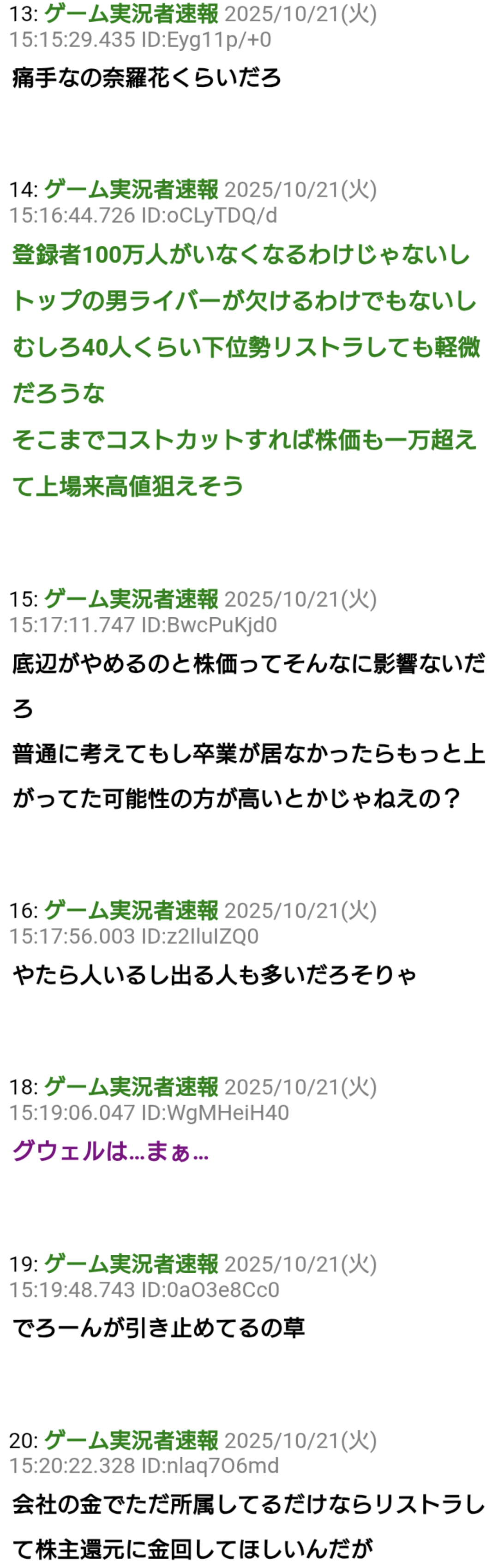 | … | 1529無題Name名無し 25/10/24(金)19:58:01No.1904383そうだねx16>結局en辞めた人みんな問題児か |