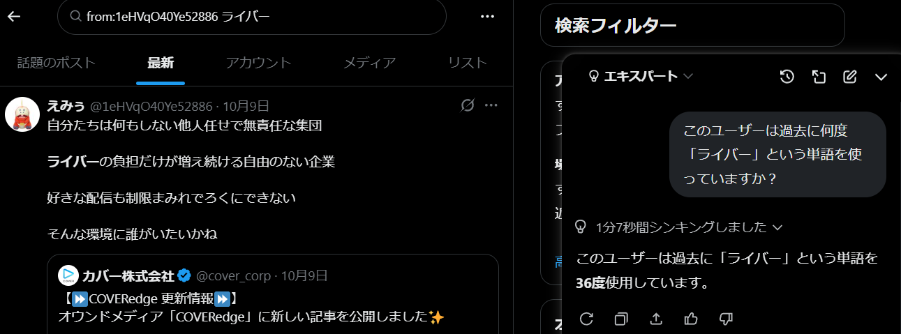 | … | 6無題Name名無し 25/10/20(月)19:25:17No.1902649そうだねx3 1760955917609.jpg-(48156 B) Xで他箱中傷をしているアカウントがにじリスかを確認する方法 |