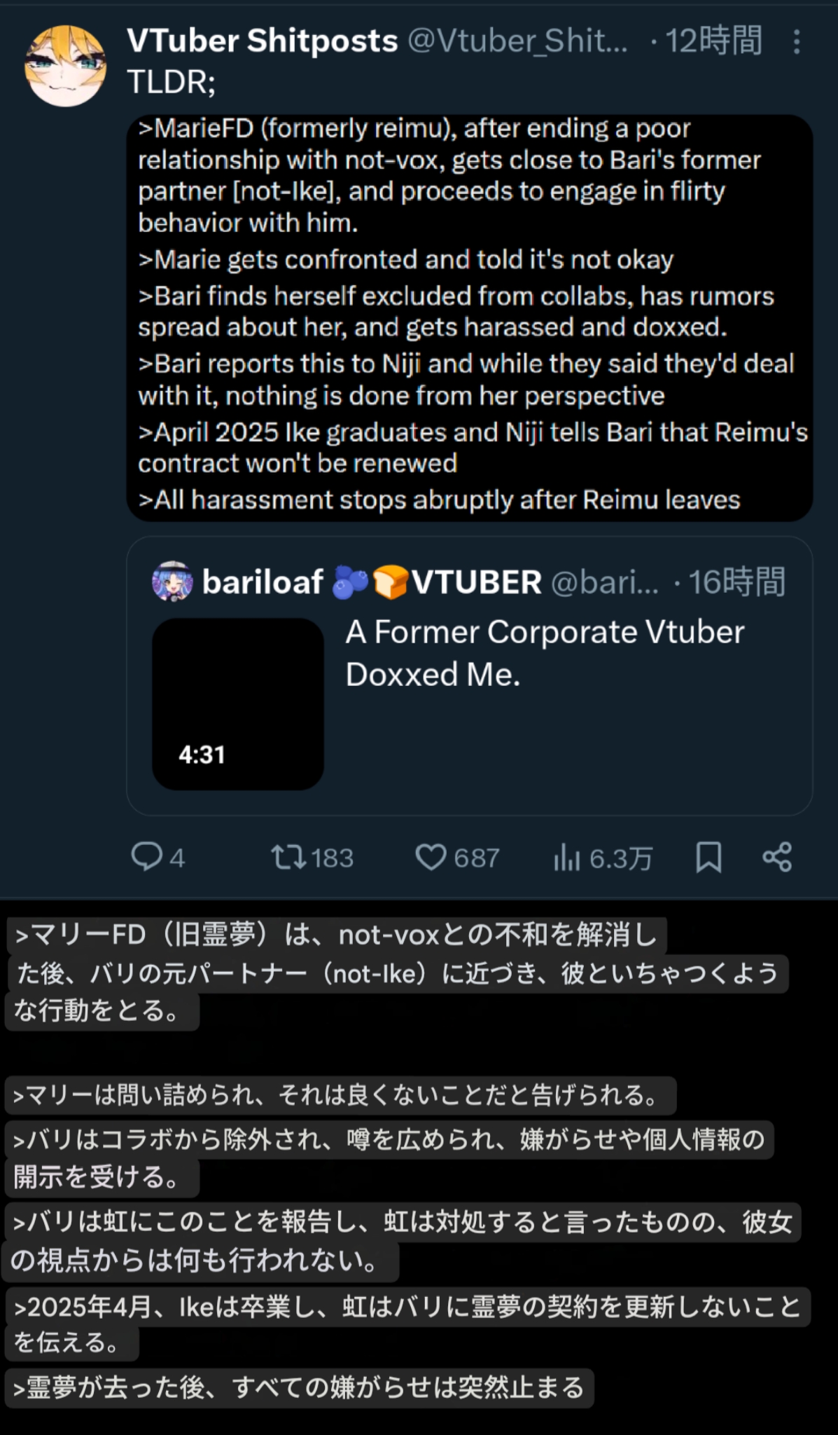 | … | 1542無題Name名無し 25/10/24(金)20:21:36No.1904399そうだねx8 1761304896234.jpg-(766274 B) >動画に日本語字幕入れたけど予想以上にドロドロだった |