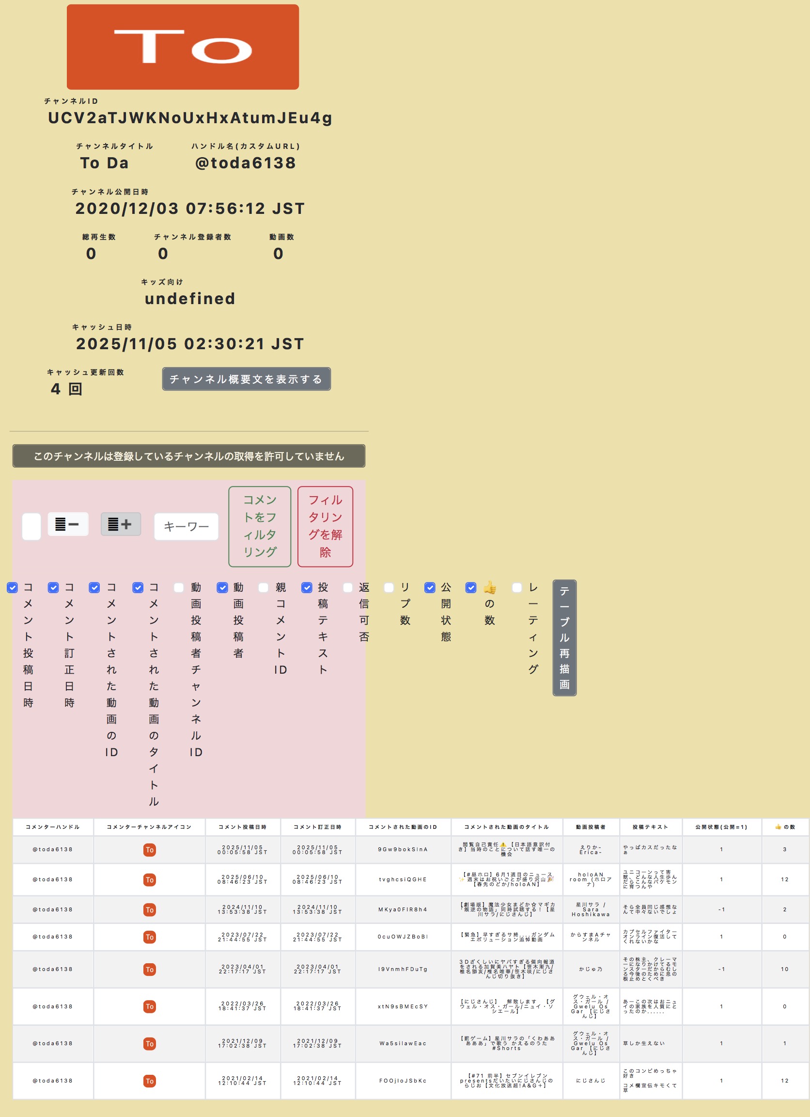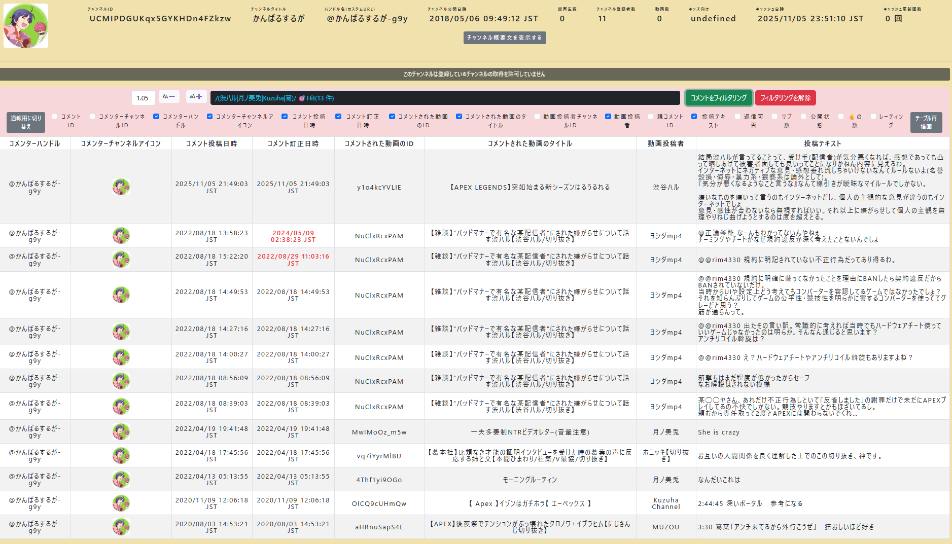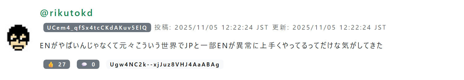 | … | 8無題Name名無し 25/11/01(土)01:52:06No.1907314そうだねx6 1761929526096.png-(89896 B) ■動画のコメント検索をしたり、過去のコメントを見れるサイト |