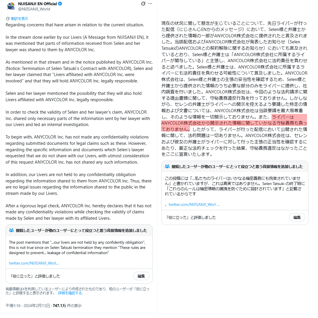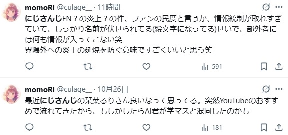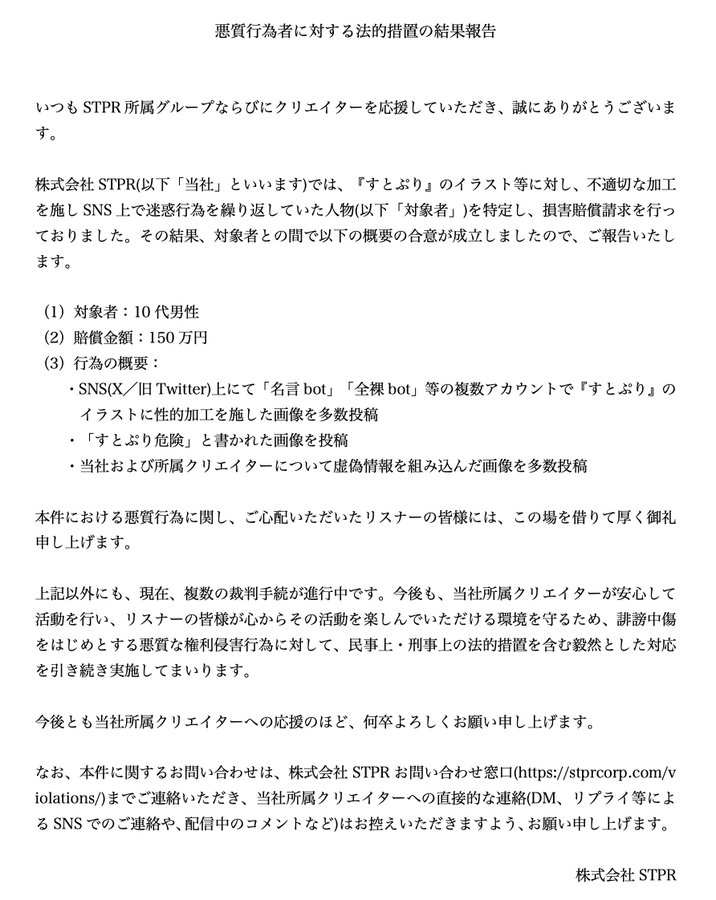 | … | 4無題Name名無し 25/11/01(土)01:49:40No.1907310そうだねx5にじさんじ運営会社ANYCOLORによる違法疑いの行為等が確認された場合は上記通報先に加えて以下にも通報を |