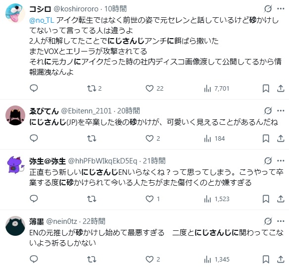 | … | 1994無題Name名無し 25/11/07(金)10:50:02No.1909643そうだねx16>こよりの謝罪分の誤字にまで揚げ足取って群がるにじリスはほんとさぁ… |